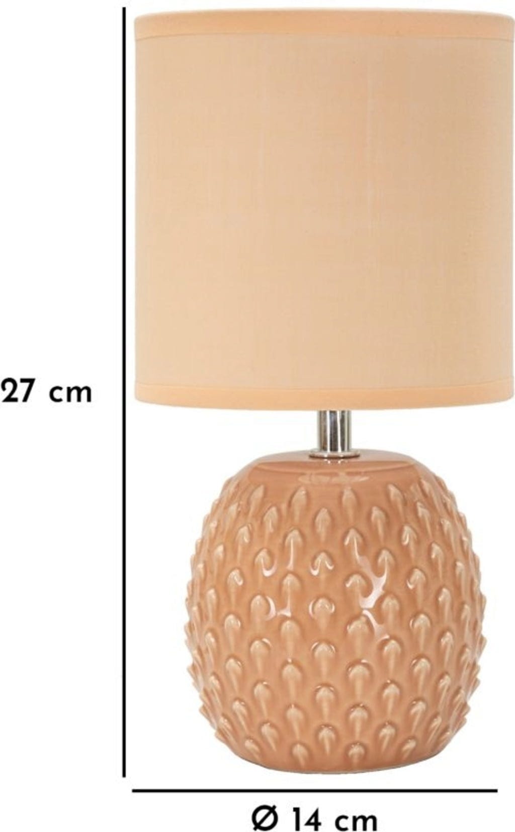 Apportez sans effort une touche d'élégance délicate et de style moderne à votre chambre à coucher. Cette charmante lampe de chevet dans une chaude teinte pêche est l'accessoire idéal pour une atmosphère féminine et sereine. Le pied de la lampe se distingue par son ornement en relief unique et palpable, composé de légères pointes : un design détaillé et tactile qui attire immédiatement le regard.