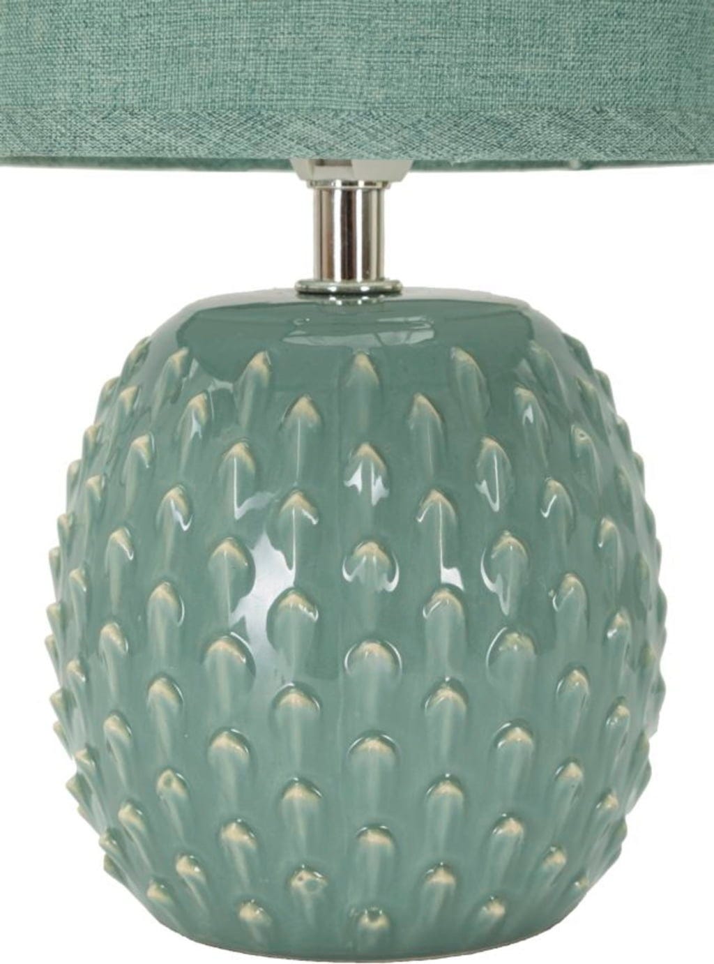 Apportez une touche de fraîcheur et de modernité à votre espace avec cette lampe de chevet saisissante. Le pied de lampe d'un joli turquoise attire immédiatement le regard et se distingue par son relief palpable composé de légères pointes, qui confère du caractère à votre décoration.