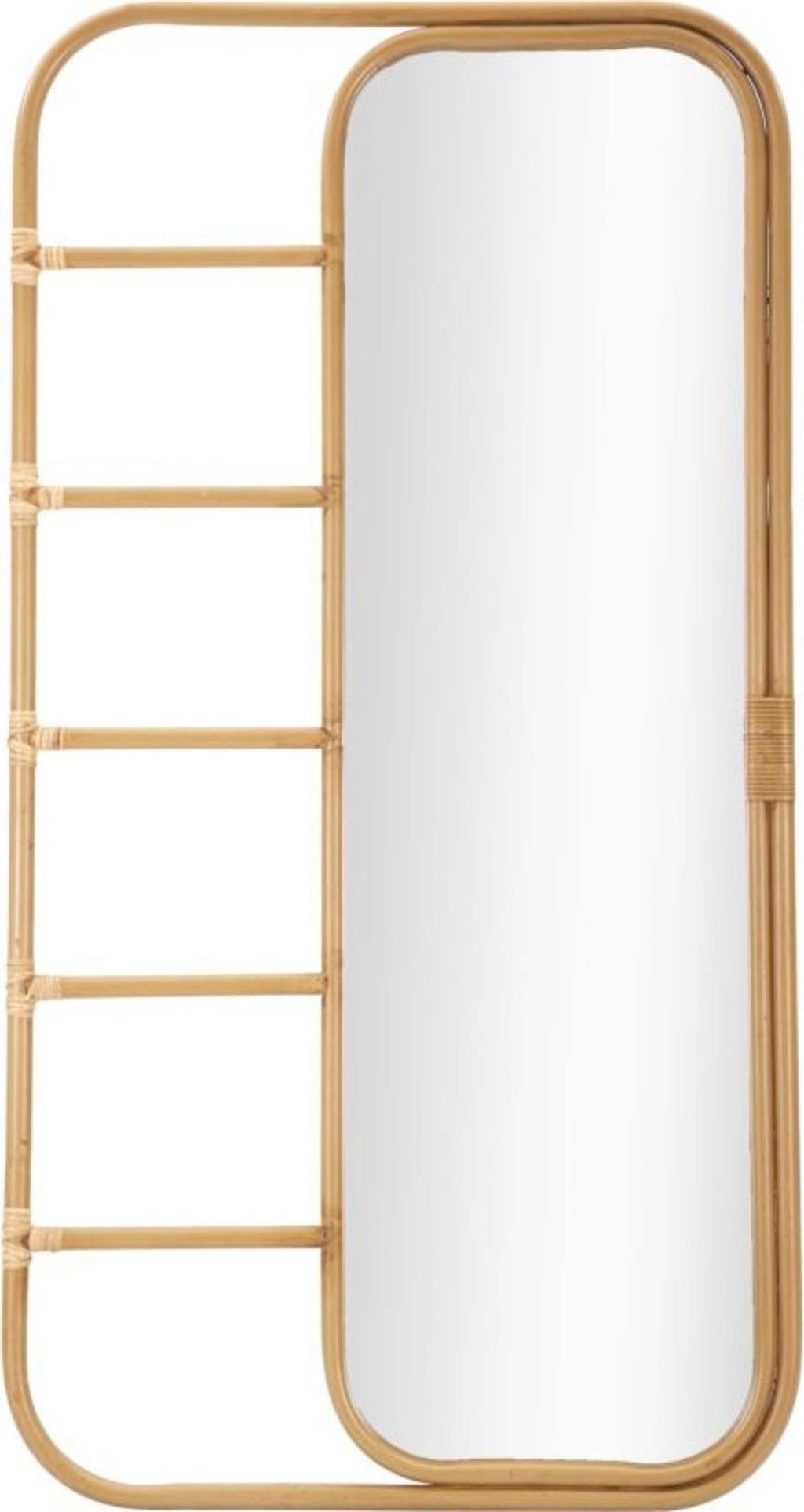 Le point fort : la structure latérale façon échelle, intégrée au cadre. Ses barres transversales servent de porte-accessoires raffinés ou de support pour écharpes, sacs et tenues du lendemain. Avec sa forme fine et haute, et ses angles arrondis, le miroir conserve une légèreté visuelle très moderne. Offrez-vous cet accessoire bien pensé, qui réunit utilité et esthétique avec une belle fluidité.