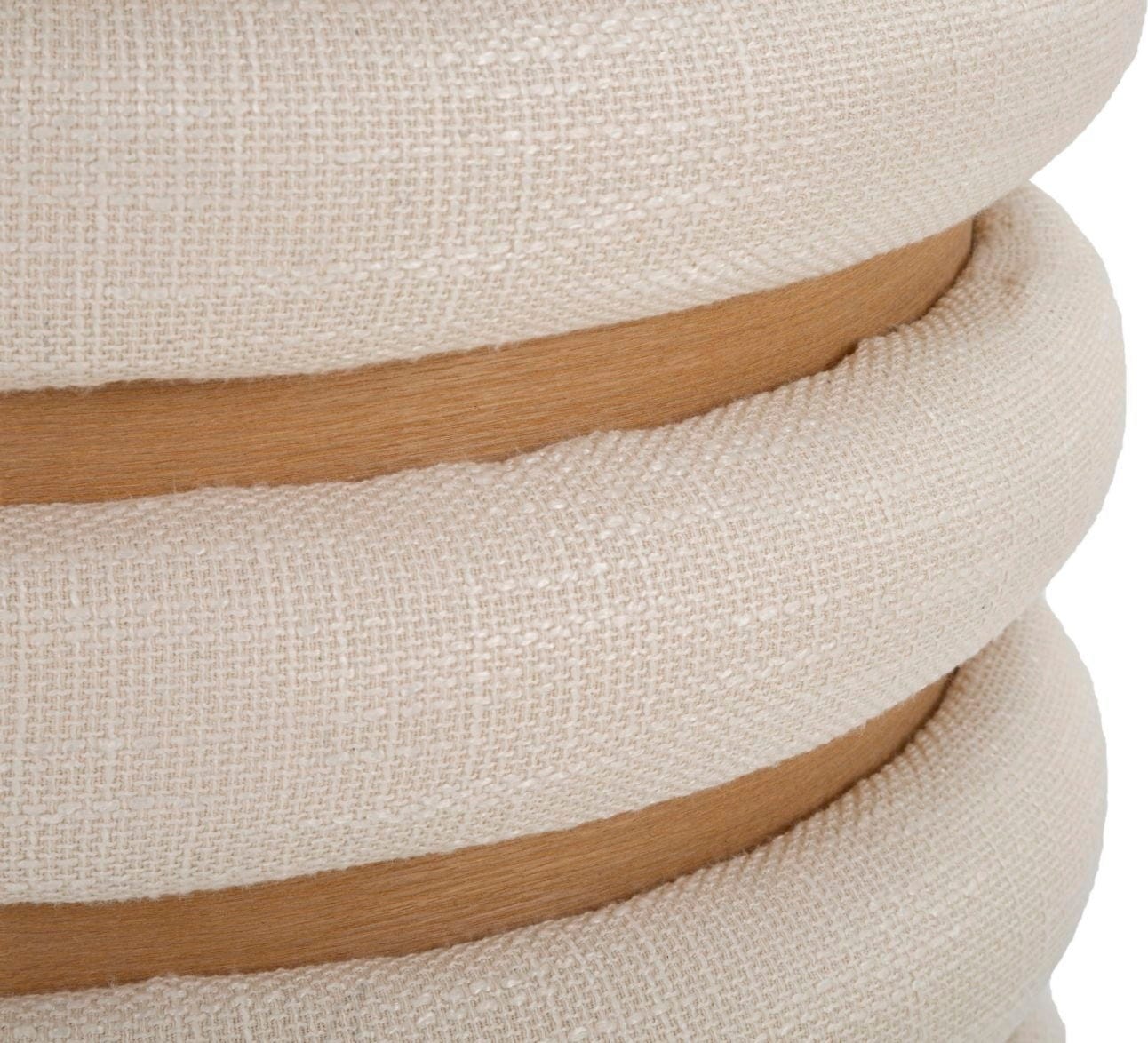 Faites une déclaration de style dans votre intérieur avec le Pouf Damasco Line de Mauro Ferretti. Ce pouf rond redéfinit le confort avec son motif singulier de cercles en relief. L’effet visuel provient d’anneaux rembourrés superposés, séparés harmonieusement par des joints en bois visibles.
