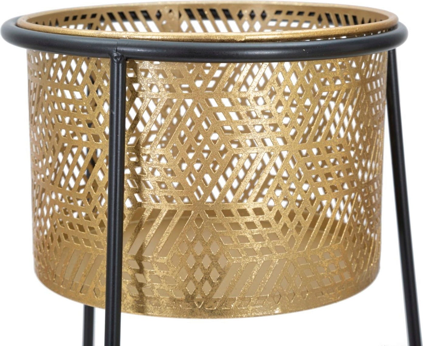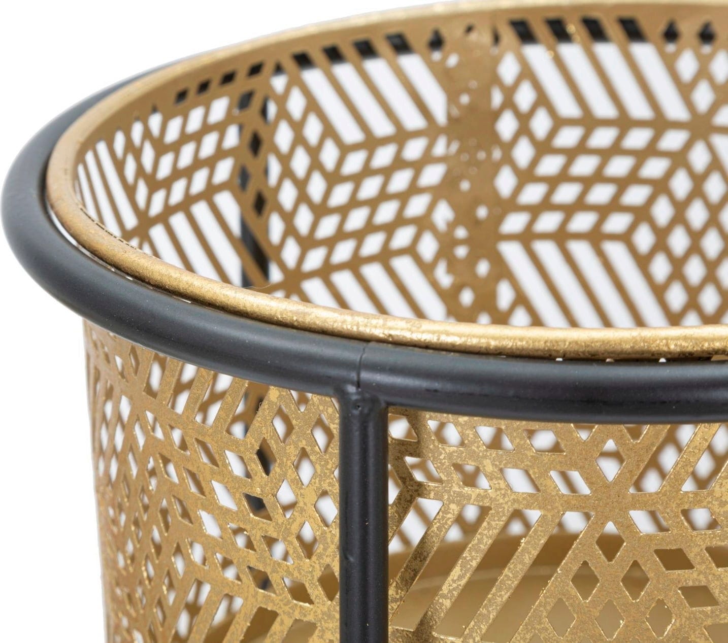 Ce duo séduit par une allure glamour, à la fois sobre et élégante, qui met vos plantes littéralement à l’honneur. Les cache-pots cylindriques reposent sur de fins piètements en métal noir et se distinguent par une perforation géométrique en finition dorée, pour une touche de classe. Les cache-pots sont amovibles, ce qui facilite le remplissage et l’entretien au quotidien. Ensemble ou séparément : le Set de Supports pour Pot de Fleurs Exy, est parfait pour créer des accents stylés dans tout type d’ambiance.