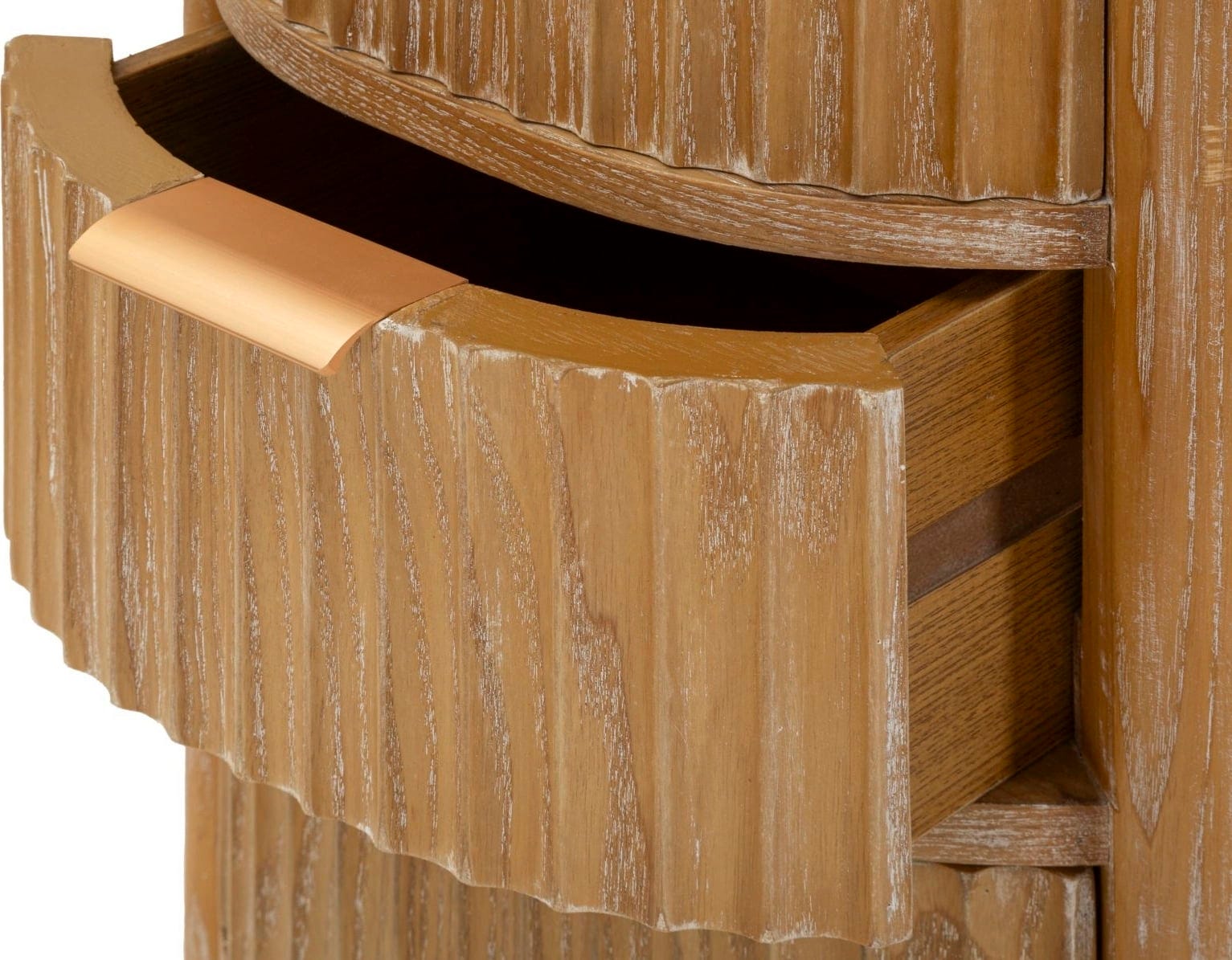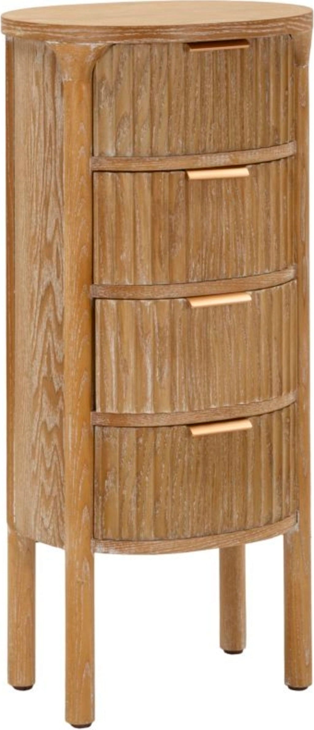 Les façades des trois tiroirs pratiques sont discrètement structurées verticalement, ce qui confère à la commode une texture raffinée. Göteborg vous offre l'espace de rangement nécessaire pour tous vos petits objets et rehausse visuellement chaque entrée, salon ou chambre à coucher. Grâce à son design bien pensé, elle s'intègre parfaitement dans les environnements modernes où chaque centimètre compte.