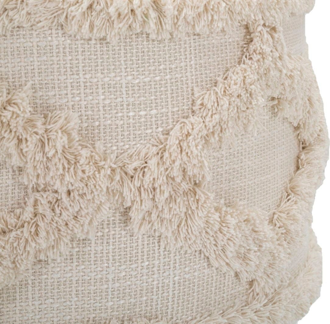 Donnez à votre espace une touche à la fois cosy et élégante avec ce tabouret rond ! Il combine confort et design proche de la nature. Le tabouret est doté d'un revêtement en tissu élégant et moelleusement rembourré en écru clair, également orné d'un motif tufté et texturé.
