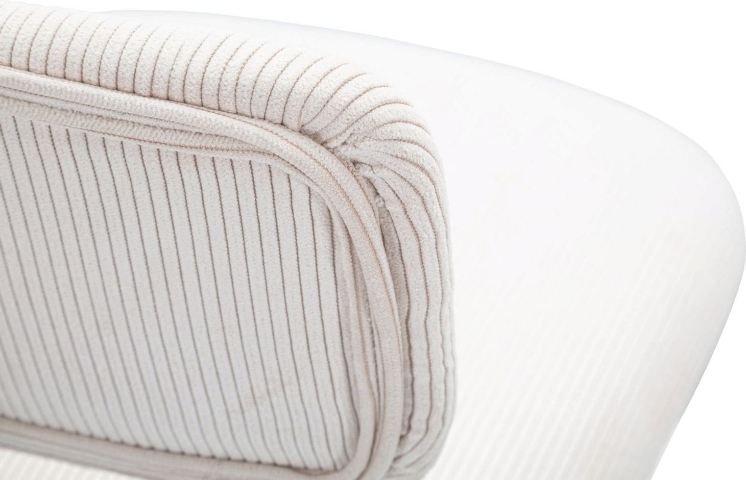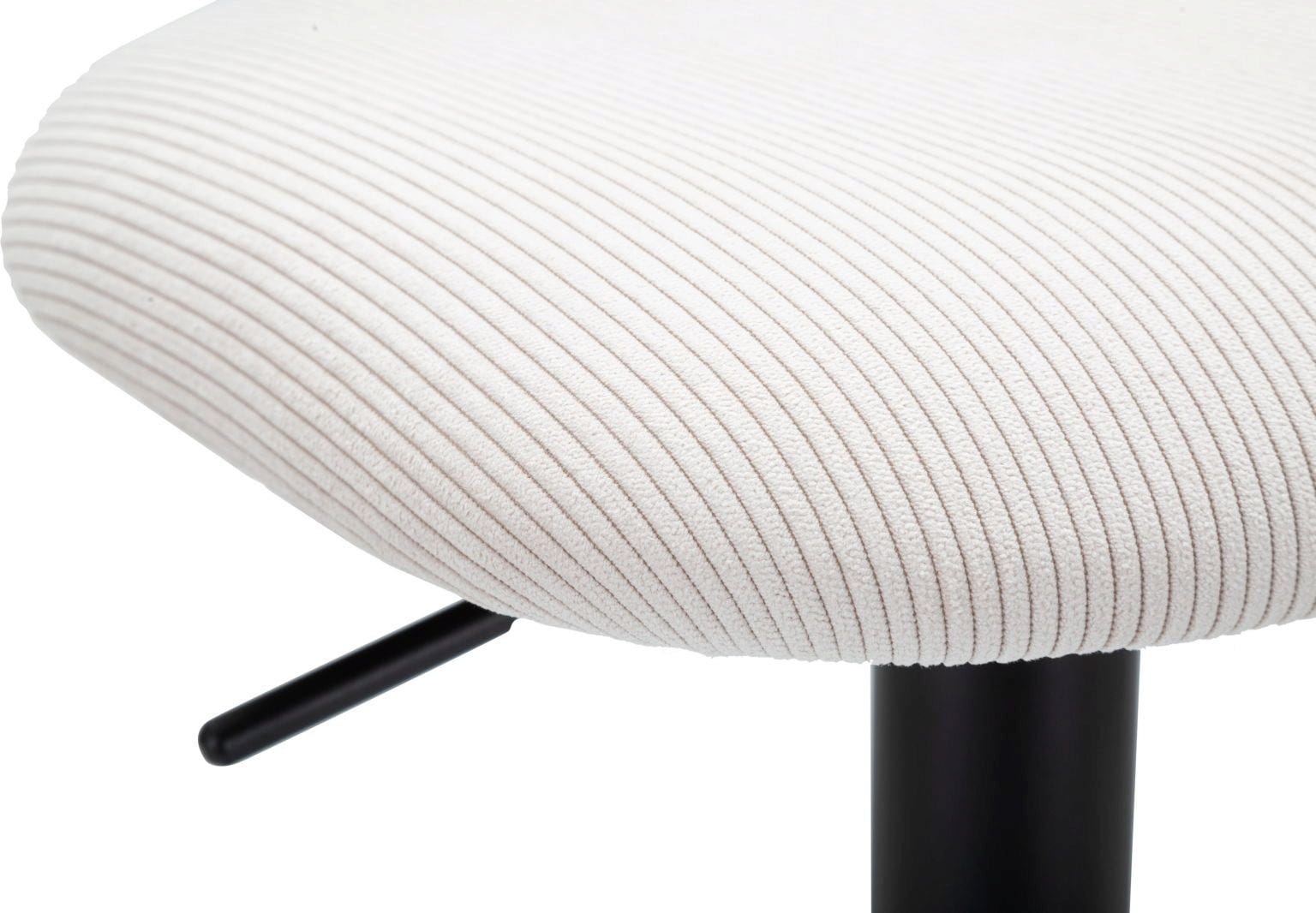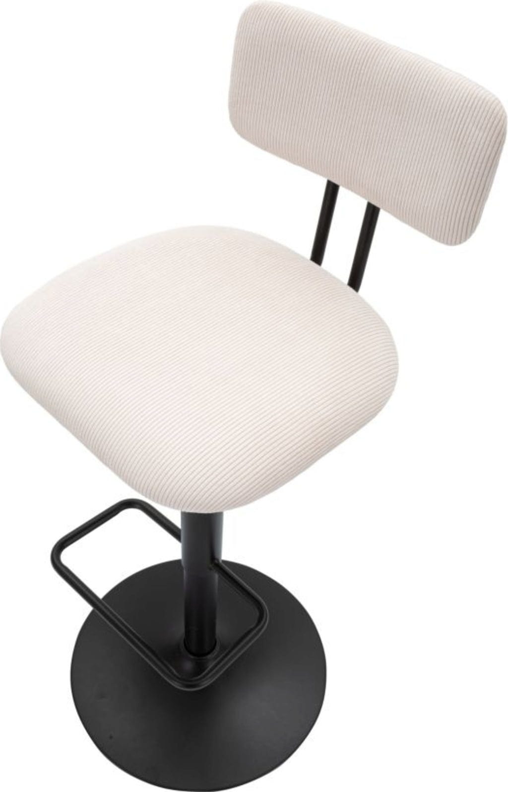 Le revêtement en tissu texturé, dans un blanc doux, apporte une note fraîche et accueillante à votre intérieur, tandis que la structure en métal noir assure stabilité et durabilité. Avec leur réglage en hauteur intégré et leur repose-pieds pratique sur tout le pourtour, ils s’adaptent parfaitement à la hauteur de votre comptoir. Petit-déjeuner convivial ou verre en soirée : ce set associe charme nostalgique et confort moderne.