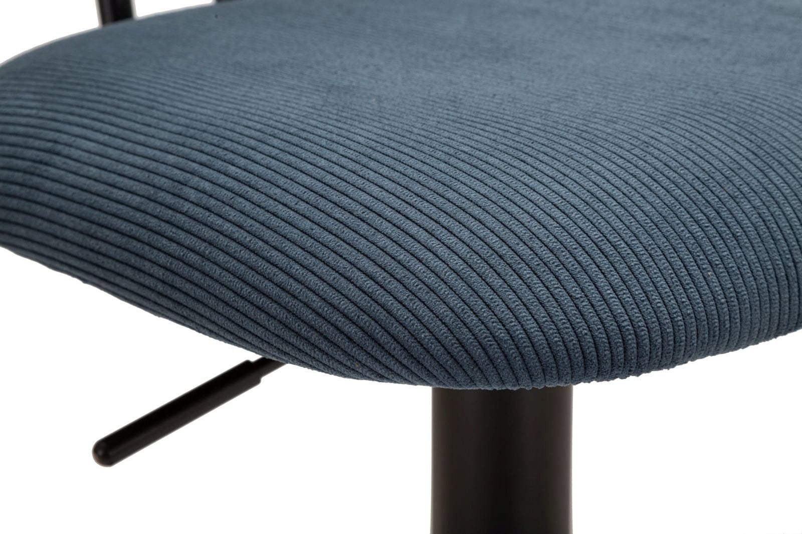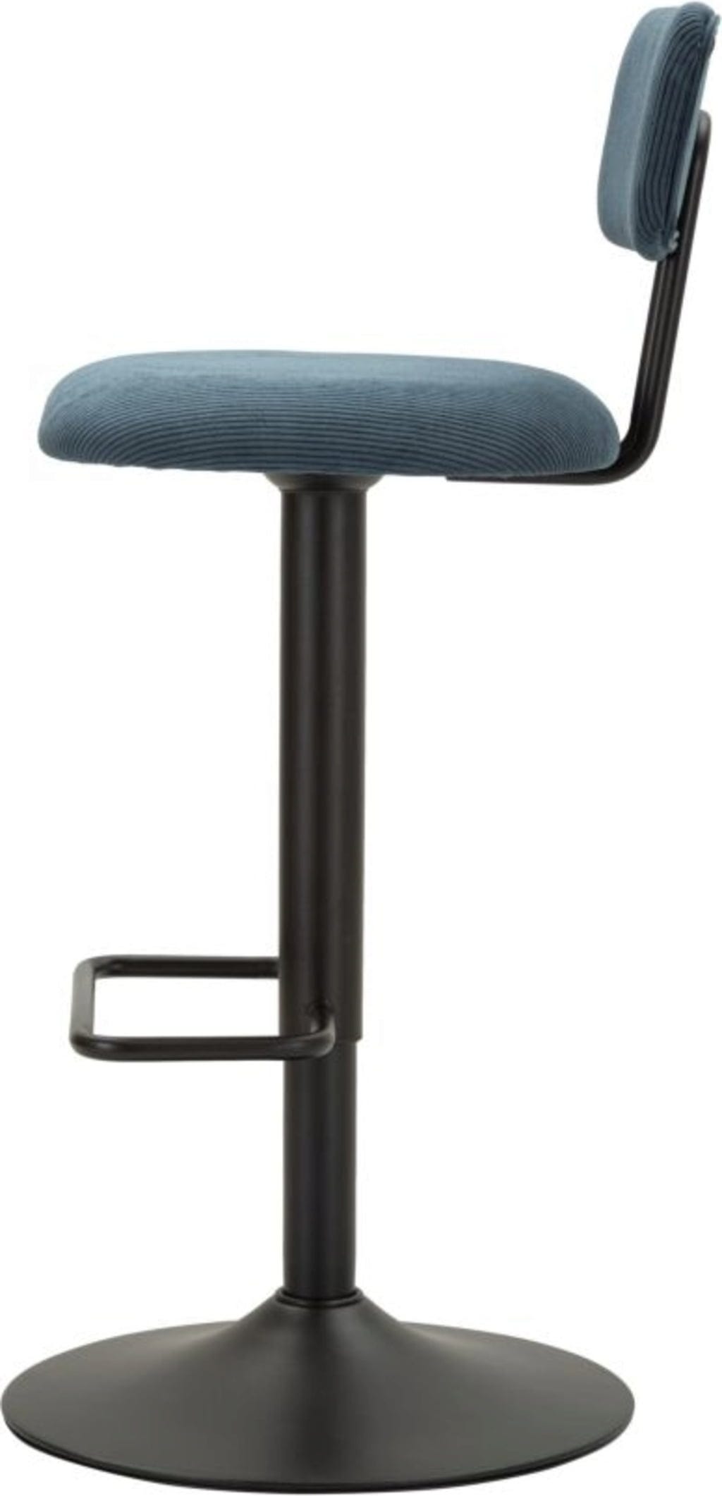 Le revêtement en tissu texturé, dans un doux bleu clair, apporte une note fraîche et accueillante à votre intérieur, tandis que la structure en métal noir assure stabilité et durabilité. Avec leur réglage en hauteur intégré et leur repose-pieds pratique sur tout le pourtour, ils s’adaptent parfaitement à la hauteur de votre comptoir. Petit-déjeuner convivial ou verre en soirée : ce set associe charme nostalgique et confort moderne.