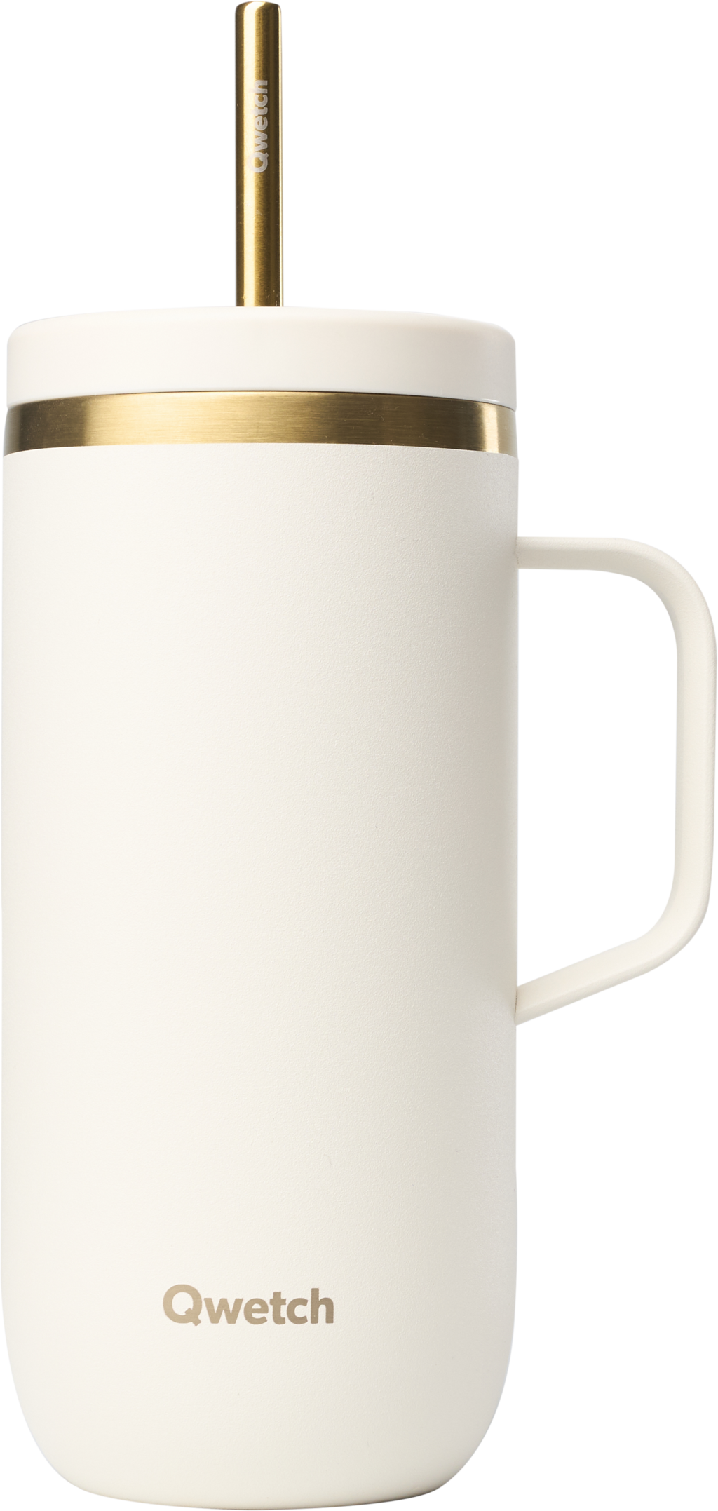 Qwetch Cold Cup Isotherme avec Anse, 600 ml, Sable et doré
