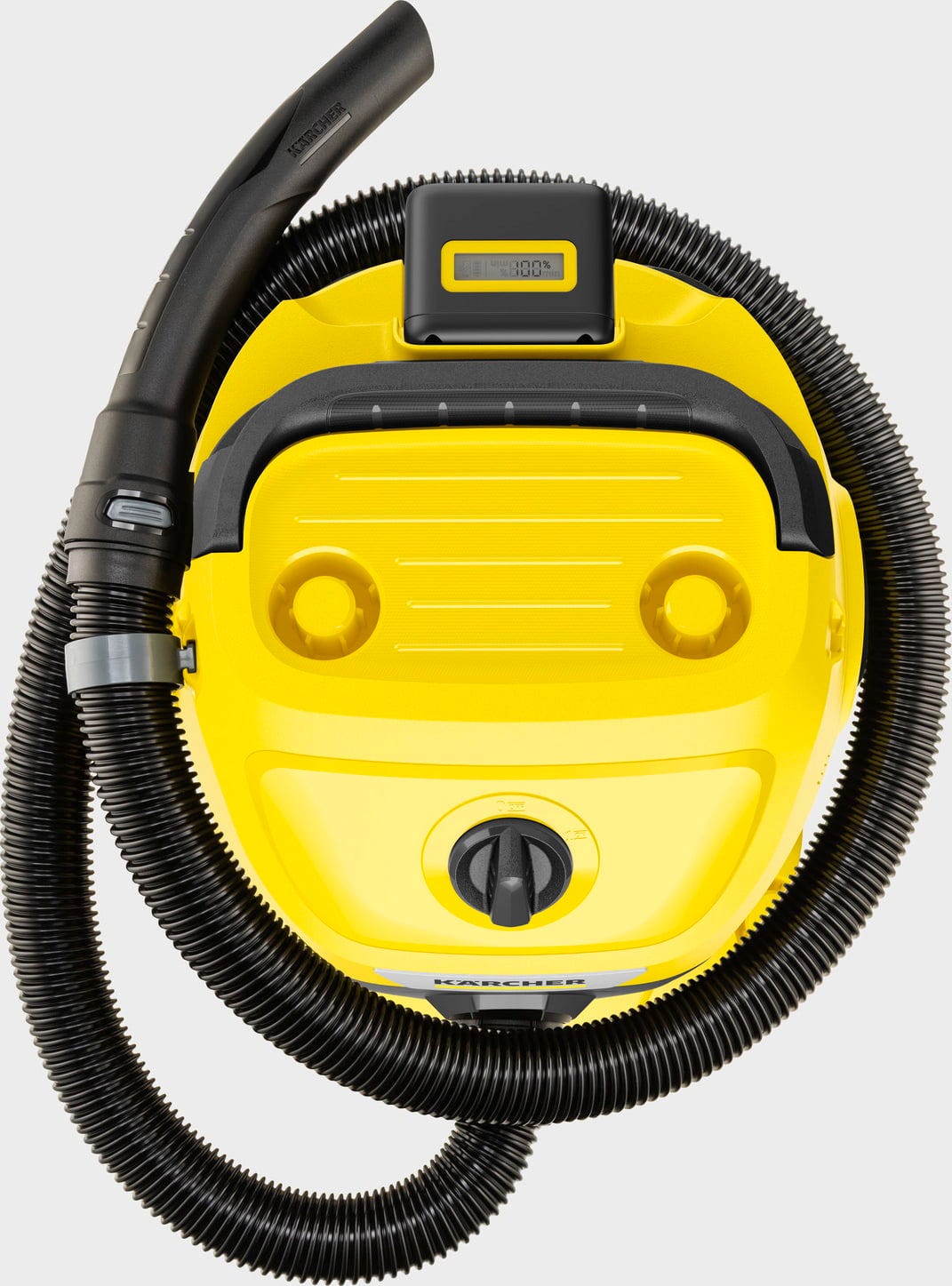 Le **Kärcher WD 3-18 S Battery Set V-17/20** est un aspirateur eau et poussières sans fil compact de la classe WD 1–3, idéal pour les travaux de nettoyage flexibles dans la maison, le garage ou la cave. Grâce à la plateforme 18 V Battery Power, l'appareil fonctionne indépendamment de l'alimentation électrique – pratique pour les chantiers sans électricité installée, l'abri de jardin ou l'allée.