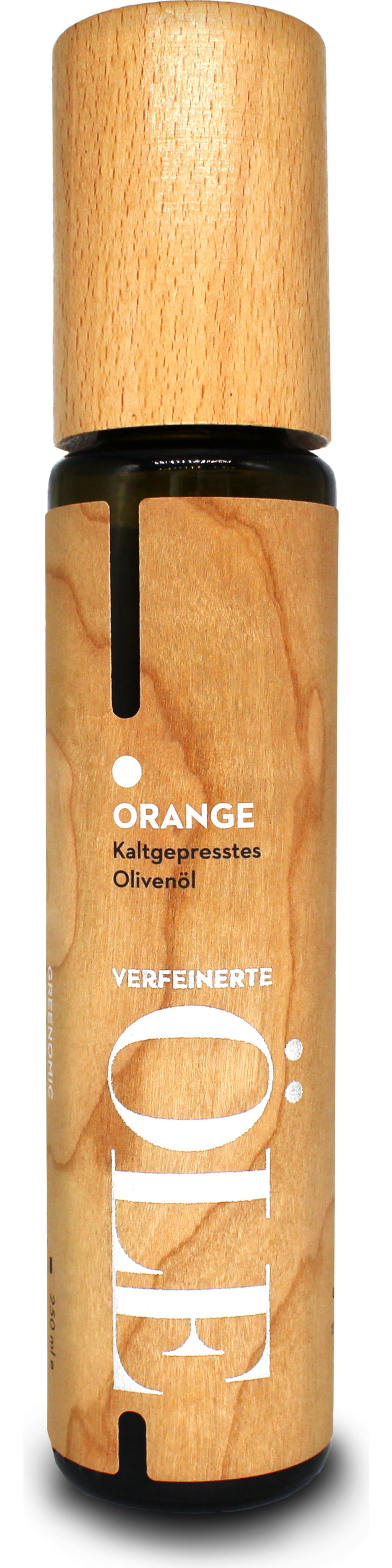 Greenomic Huile d'Olive dans sa Bouteille en Bois, Orange (250 ml)