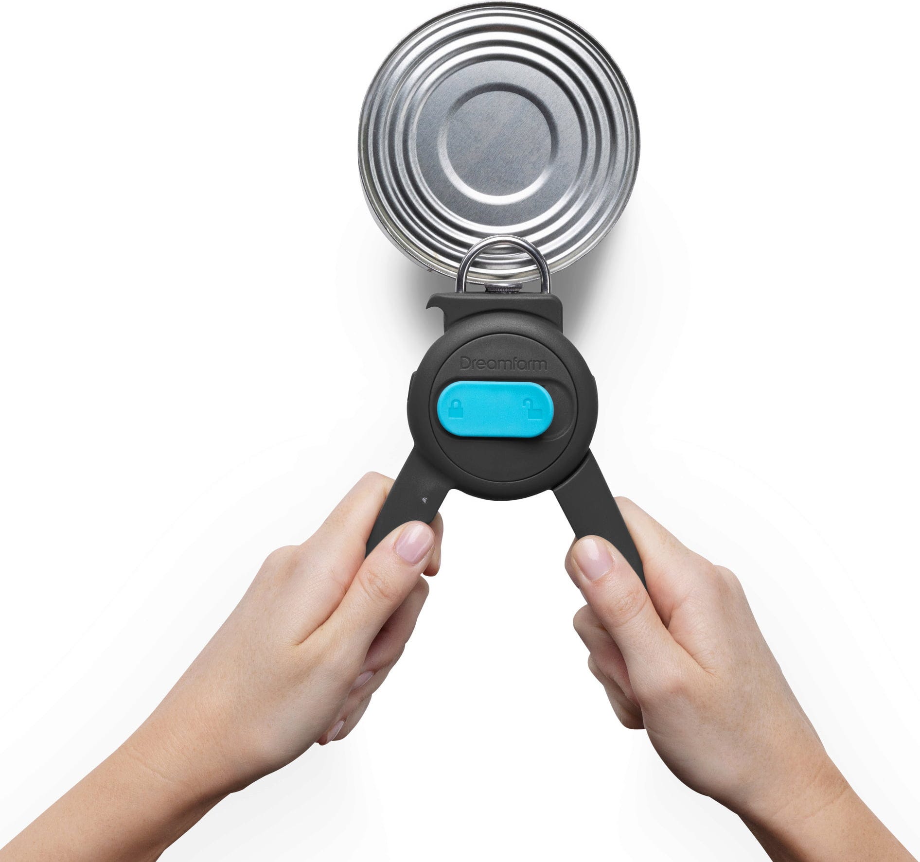 Avec l’ouvre-boîte Dopener de Dreamfarm, un ouvre-boîte innovant 3-en-1 est à disposition et fonctionne presque tout seul en serrant simplement les poignées. La roulette en acier inoxydable trempé découpe avec une grande précision sans laisser de bords tranchants, tandis que l’aimant intégré permet de soulever le couvercle après l’ouverture de manière hygiénique et sans contact.