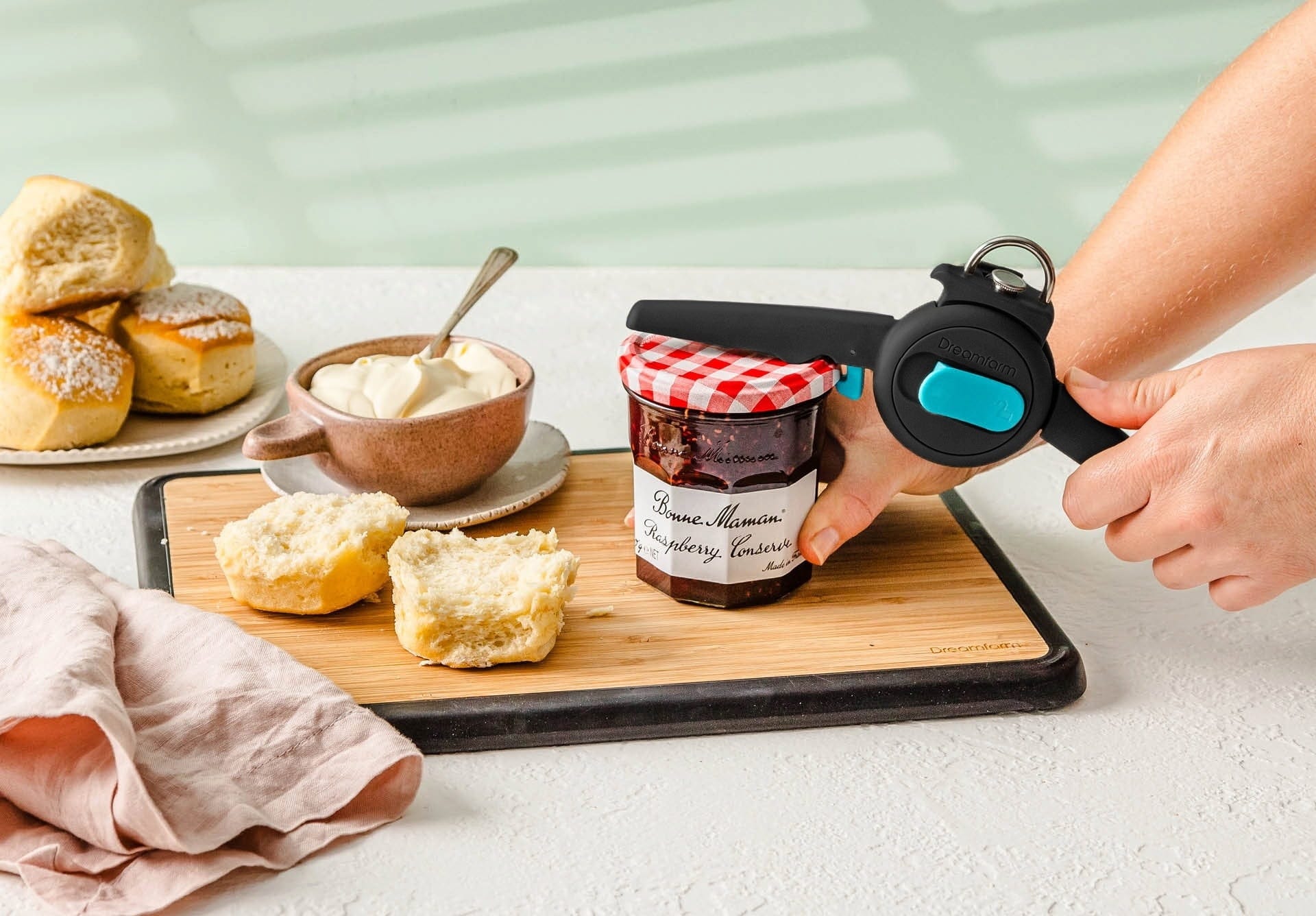 Il sert également de pratique ouvre-languette pour les boîtes de conserve et dispose d’un levier intelligent de libération du vide, permettant d’ouvrir des pots de confiture bloqués en quelques secondes et sans effort.