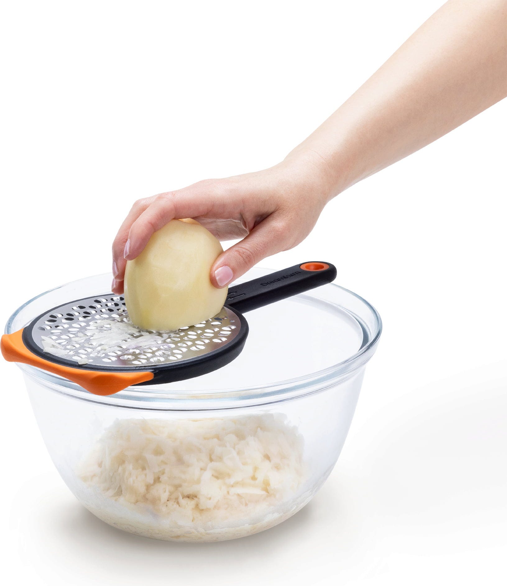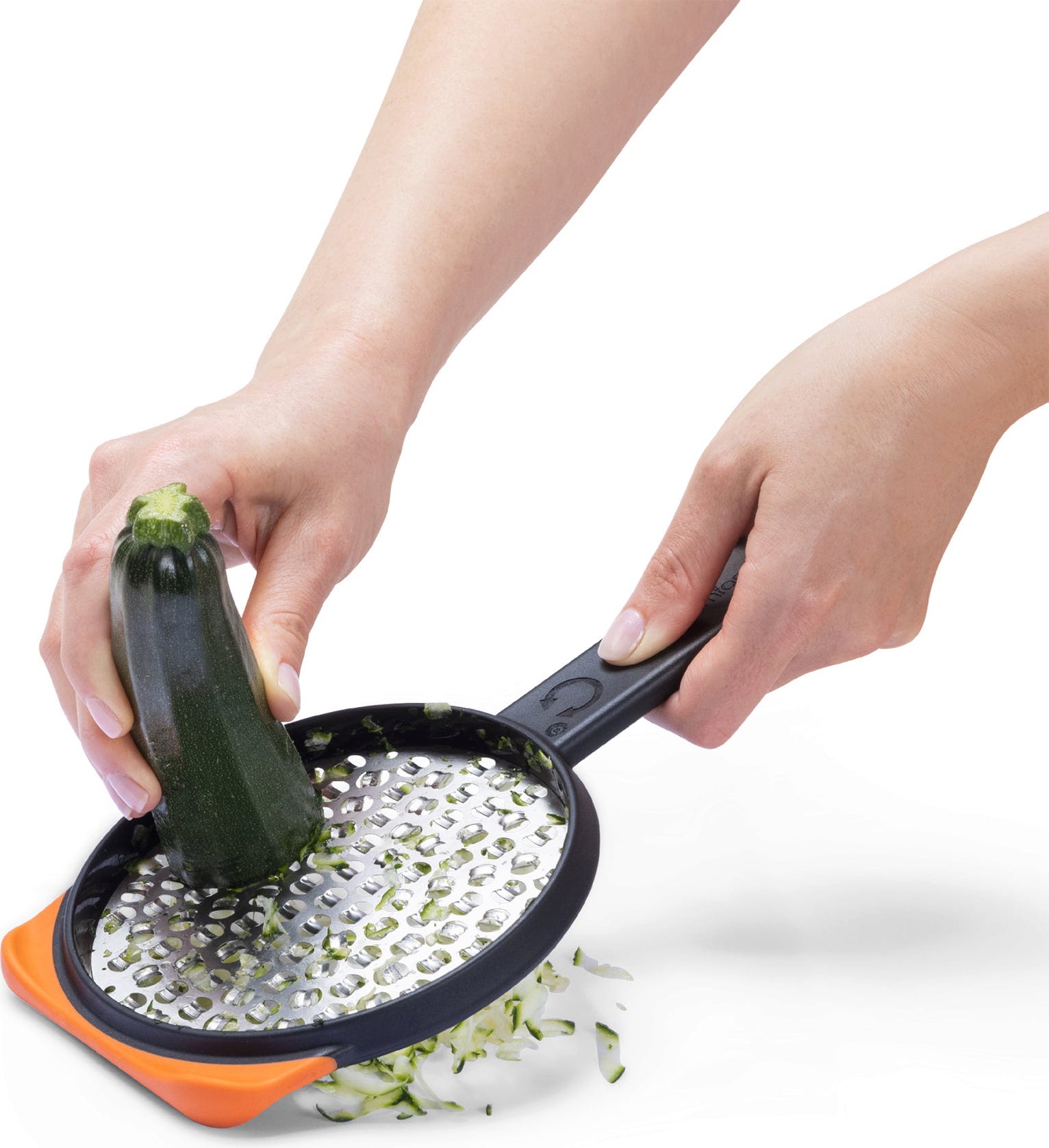 Avec la râpe Ograte de Dreamfarm, il devient facile de transformer rapidement même de grandes quantités de légumes ou de fromage en un râpé parfait. Le secret réside dans sa large surface circulaire, qui permet de travailler de manière encore plus efficace grâce aux lames présentes des deux côtés.