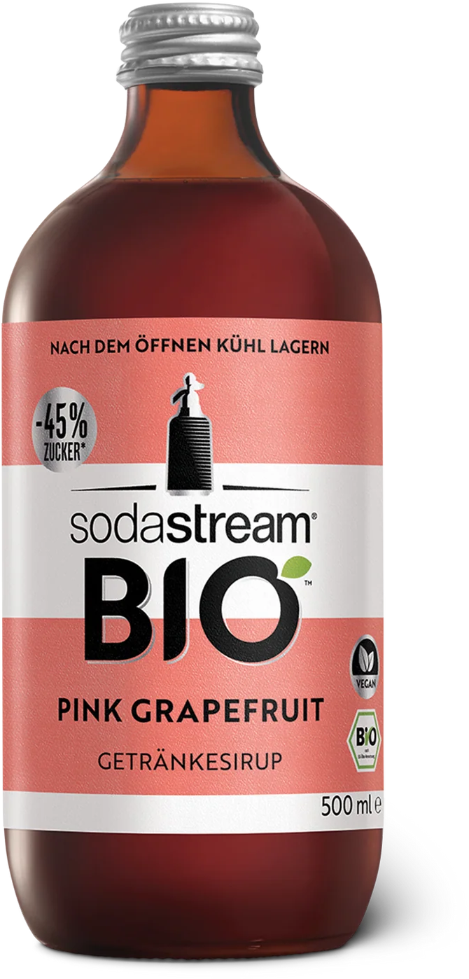 Le Sirop de Pamplemousse Rose Bio de Sodastream garantit un rafraîchissement parfait lors des chaudes journées d'été. Il suffit de mélanger un peu de sirop avec de l'eau et de déguster la boisson désaltérante obtenue. Une bouteille de sirop de 500 ml permet d'obtenir environ 3,5 litres de boisson prête à l'emploi ensuite.