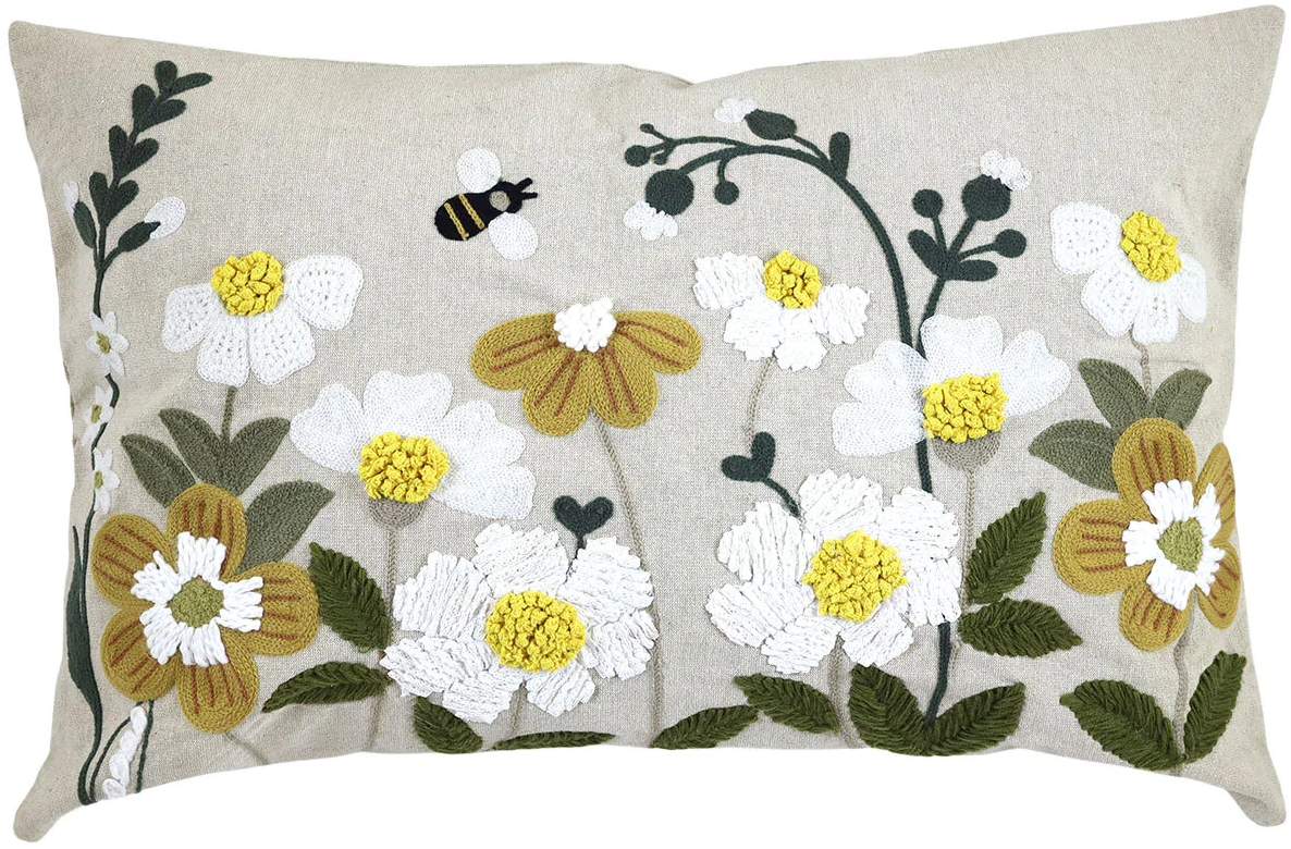 Housse de coussin florale en 100 % coton avec des fleurs brodées et une fermeture à glissière invisible sur le dessous. Les différentes structures crée un superbe effet de relief qui sera du plus bel effet sur votre canapé.