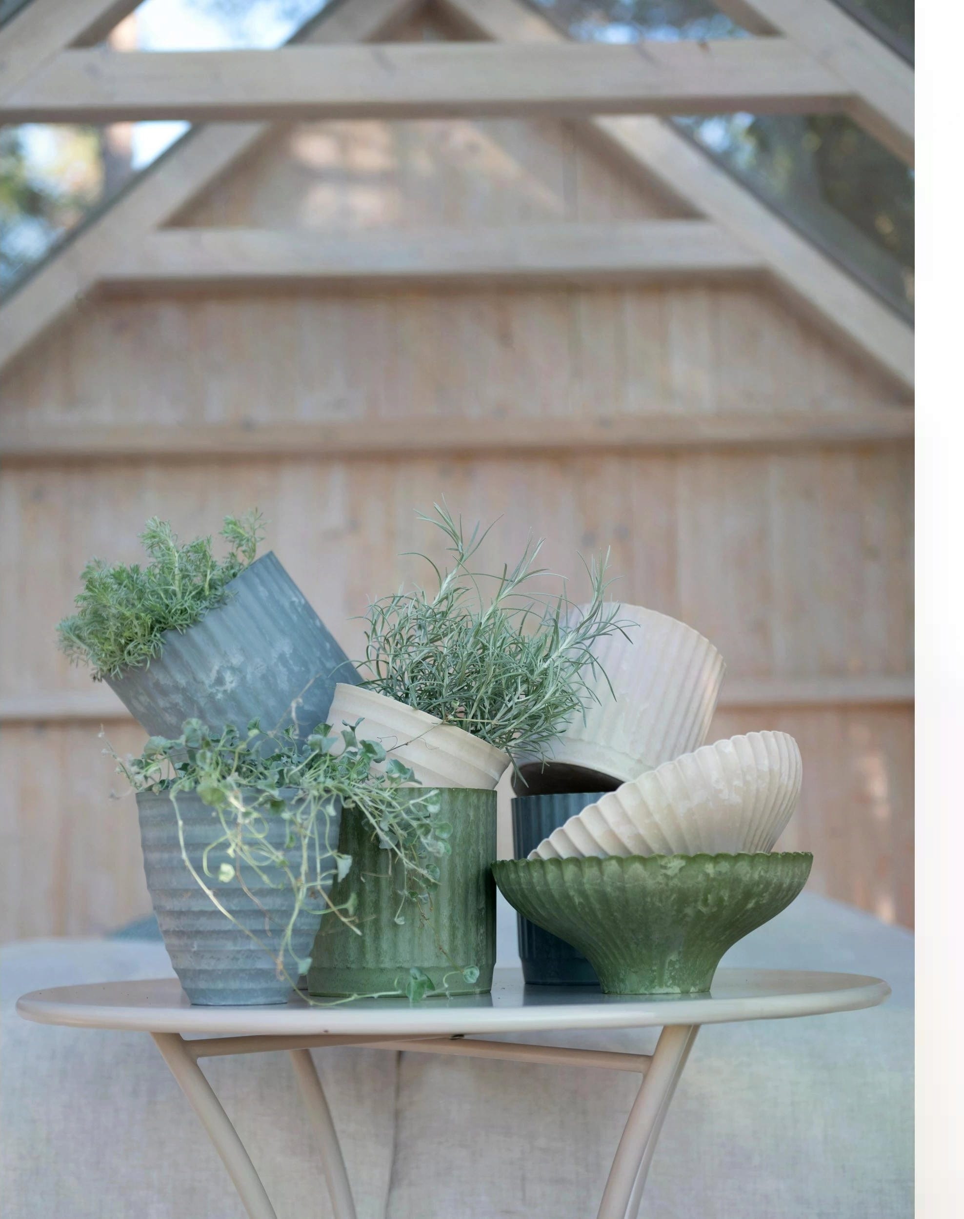 Ces jolis pots en mélange de plastique et carbonate de calcium séduisent par leur look shabby chic et leur robustesse. Parfaits pour les aromates et autres plantes.