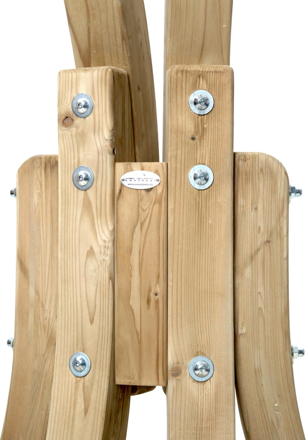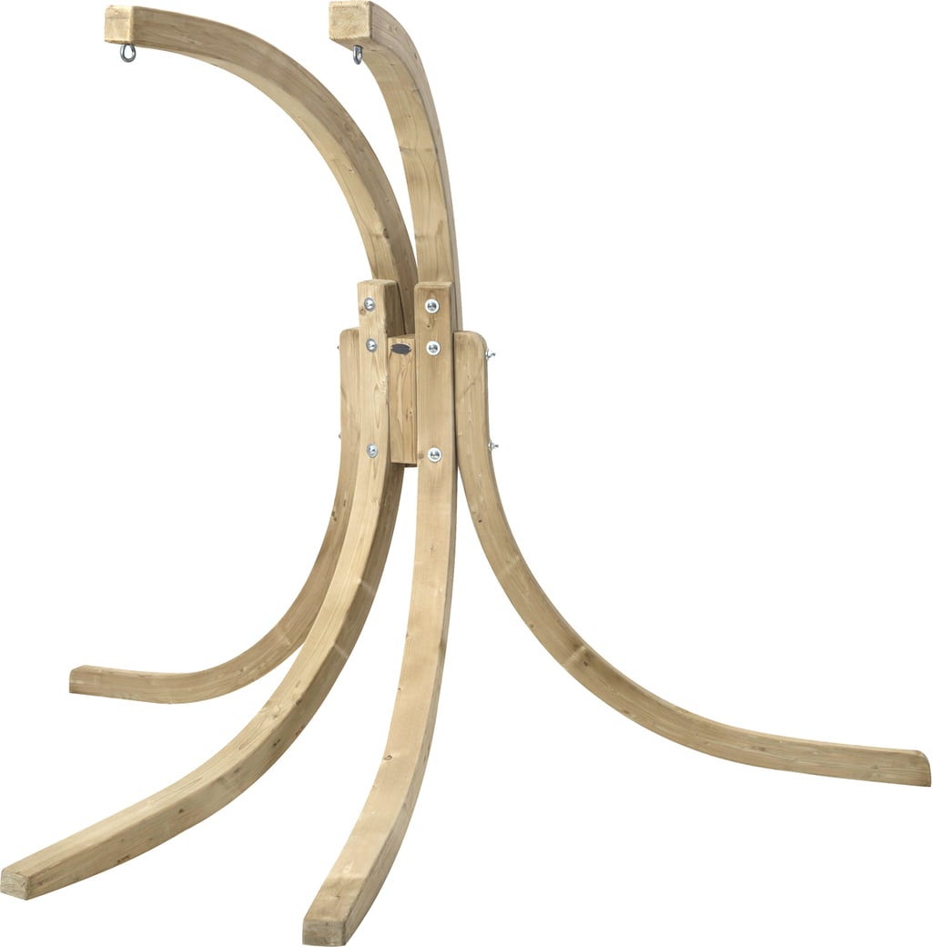Met dit praktische frame hang je je Globo Royal hangstoel in een handomdraai op! Het is gemaakt in Polen van hoogwaardig Europees vurenhout, met hoogwaardige gelamineerde verlijming en roestvrij gegalvaniseerd metalen beslag en schroeven die voor de nodige stabiliteit zorgen. Het frame is weerbestendig dankzij dompelimpregnatie.
