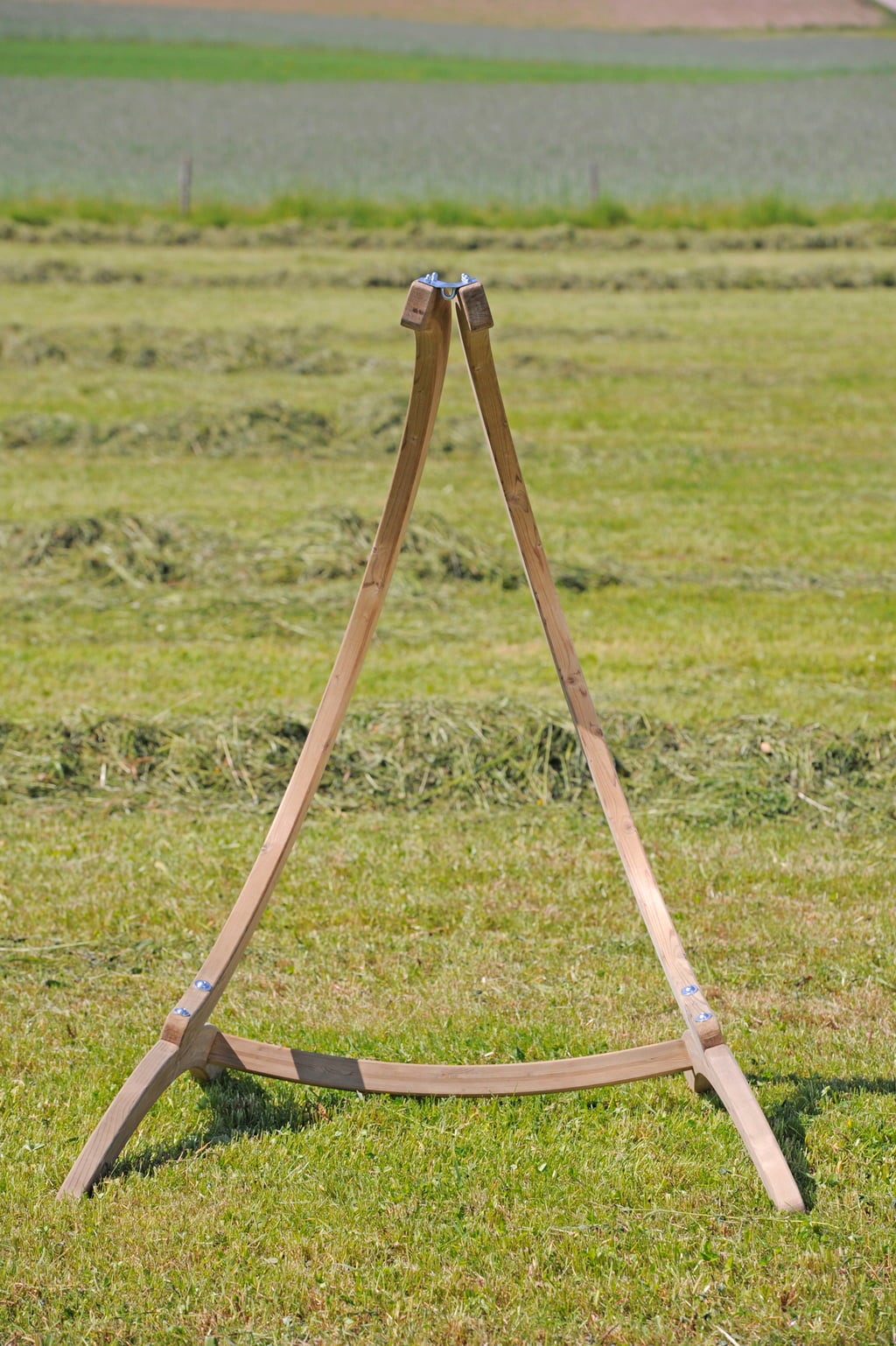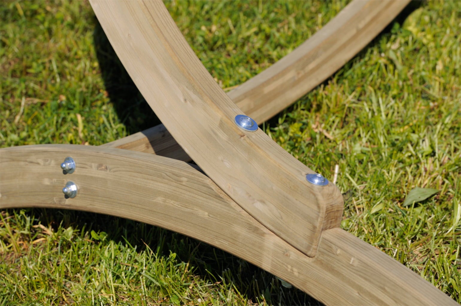 Met dit praktische frame hang je je Swing Lounger of Globo hangstoel in een handomdraai op! Het is gemaakt in Polen van Europees vurenhout van hoge kwaliteit, met hoogwaardige gelamineerde verlijming en roestvrij gegalvaniseerd metalen beslag en schroeven die voor de nodige stabiliteit zorgen. Het frame is weerbestendig dankzij dompelimpregnatie.