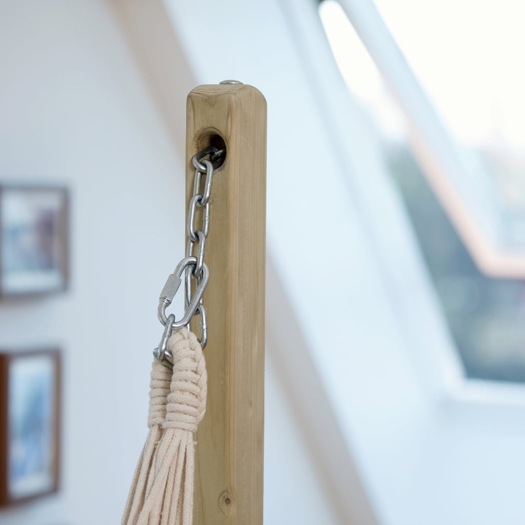 De speciale dompelimpregnatie maakt de Taurus beter bestand tegen weersinvloeden, zodat je het frame niet alleen binnen, maar ook buiten kunt opstellen! De hoogwaardige gelaagde verlijming van het hout zorgt voor maximale stabiliteit. Natuurlijk zijn ook het beslag en de schroeven gemaakt van roestvrij, gegalvaniseerd metaal, wat de duurzaamheid van dit mooie hangstoelframe onderstreept. Creëer een stijlvolle ruimte om te ontspannen in je hangstoel!