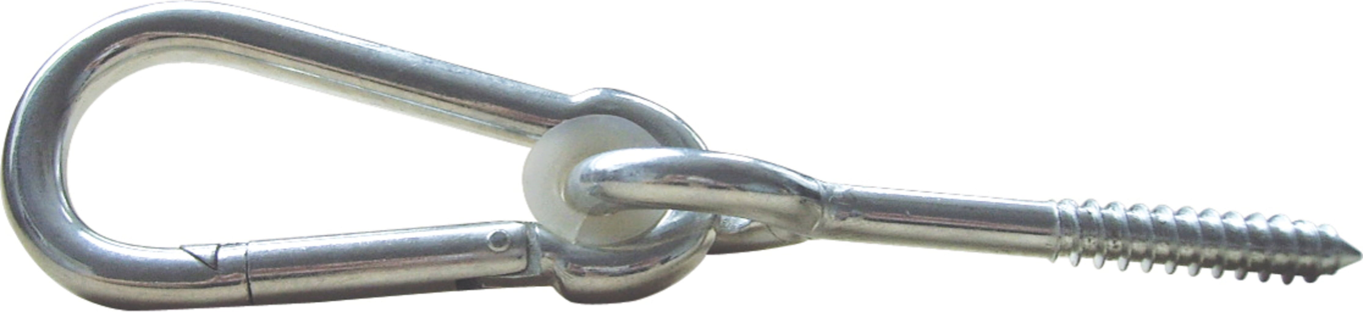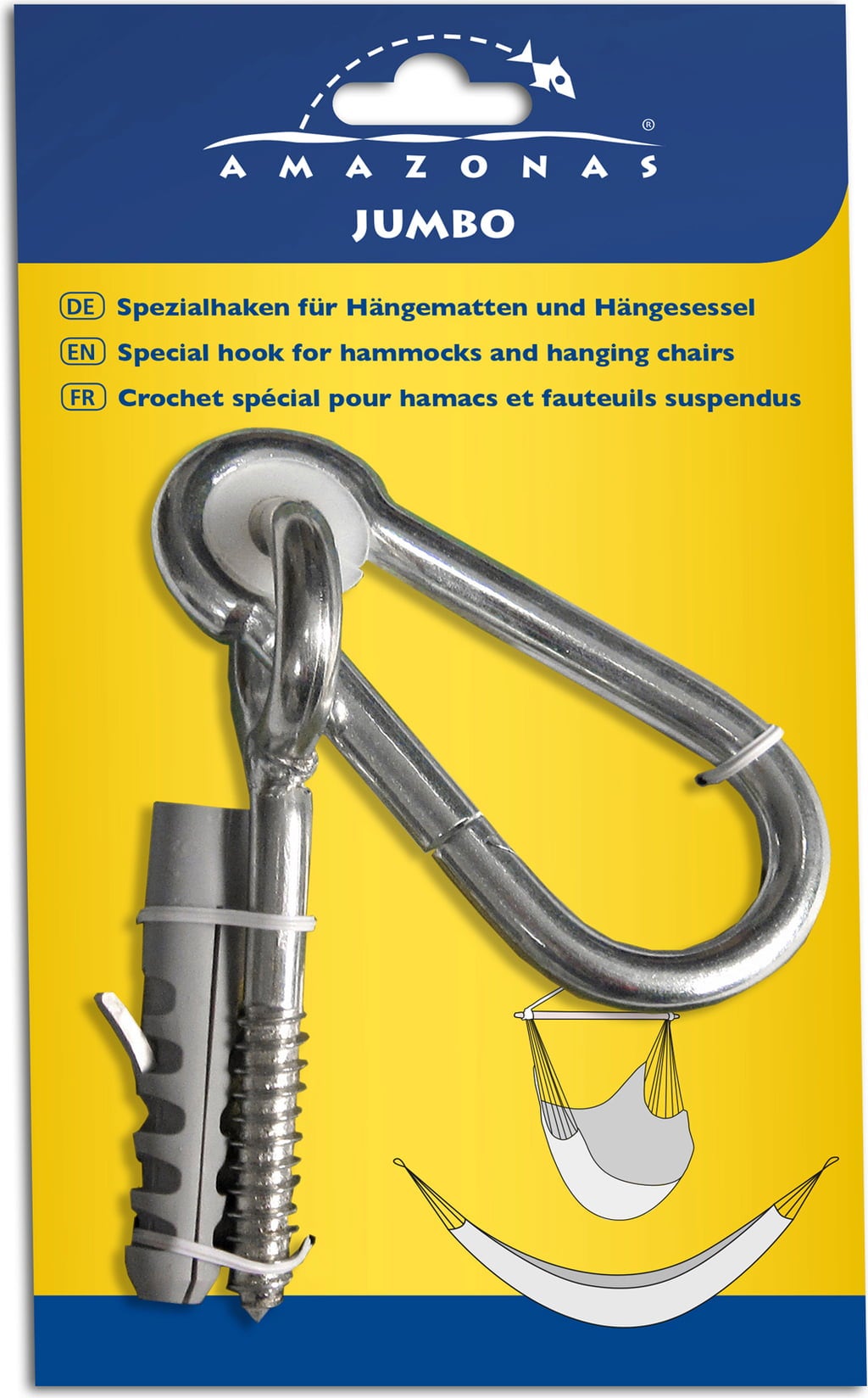 De plafondhaak Jumbo is perfect voor het ophangen van hangmatten en hangstoelen en zorgt voor perfecte stabiliteit! De levering bevat naast de karabijnhaak ook een plug en een schroef. De plafondhaak heeft ook een extra veiligheidsvoorziening in de vorm van een nylon ring, die wrijving van metaal op metaal voorkomt.