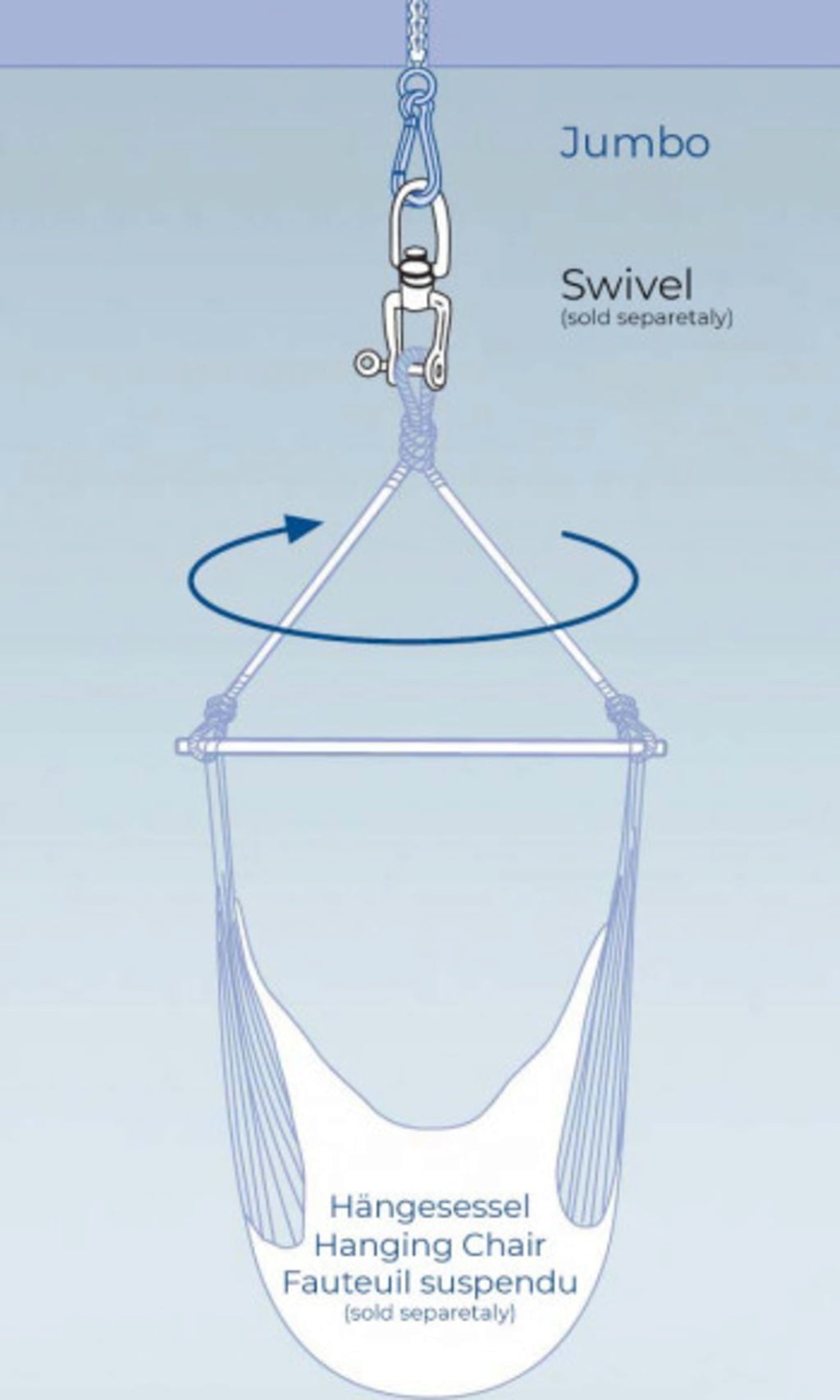 Tip: De fabrikant raadt aan om de Draaibare Karabijnhaak Swivel te gebruiken zodat je hangstoel kan draaien!
