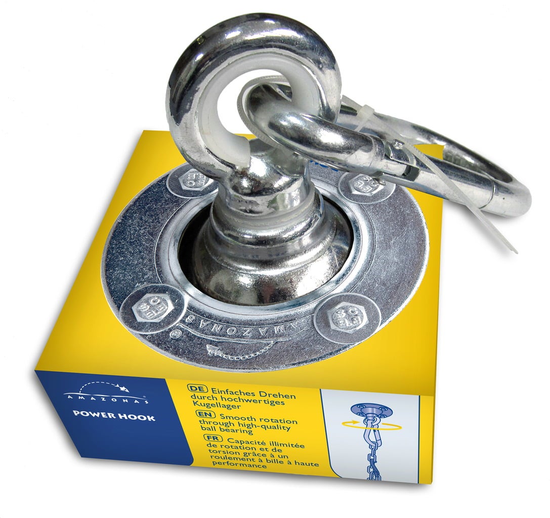 De krachtige plafondhaak Power Hook is speciaal ontwikkeld voor plafondbevestiging van hangstoelen en ander hangend meubilair. Een bijzonder kenmerk is de geïntegreerde kogellager, die soepele draaibewegingen mogelijk maakt. Hierdoor schuren de ophangkoorden niet en kun je altijd in de gewenste positie draaien om van het uitzicht of het gezelschap te genieten.