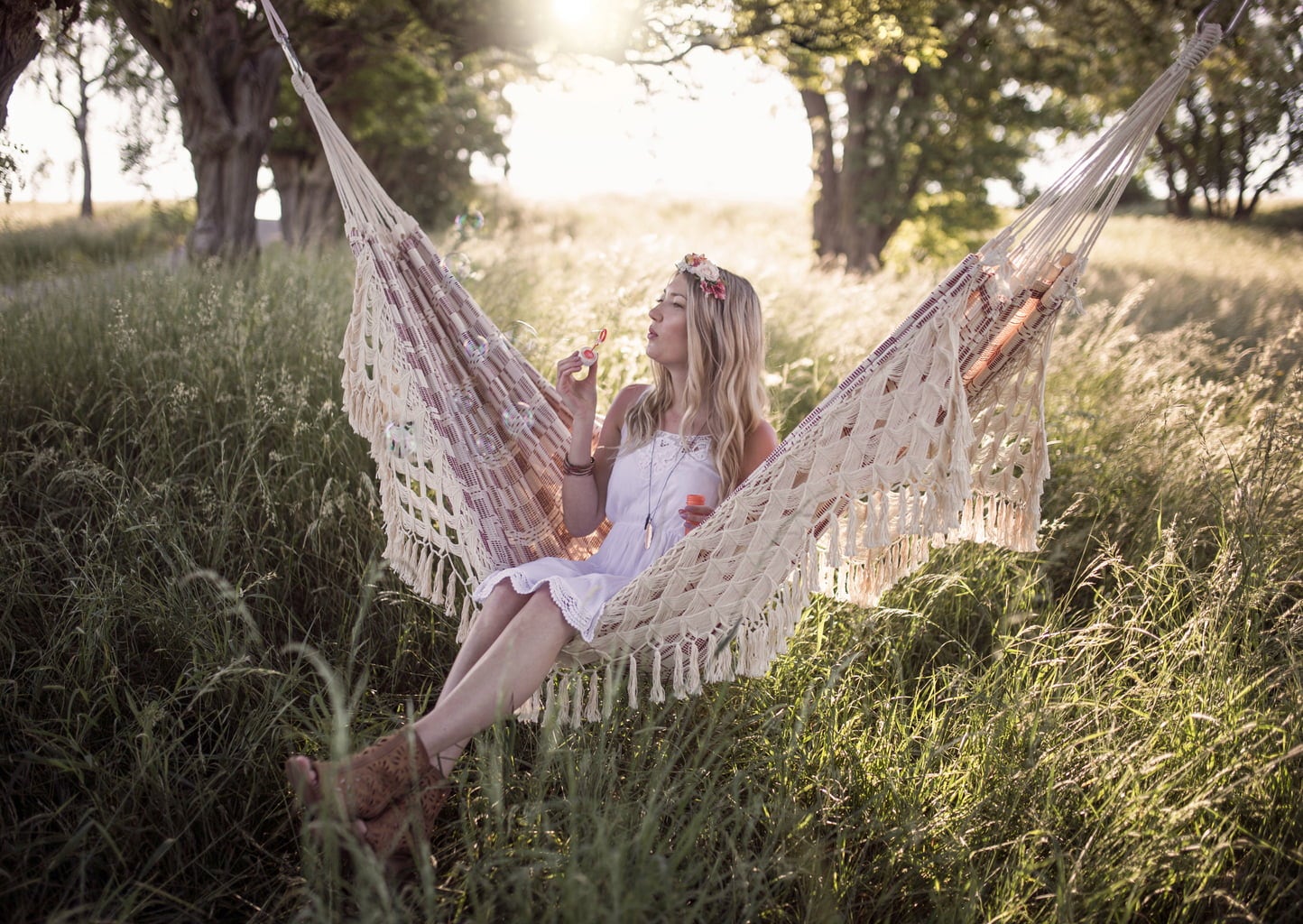 Je kunt echt tot rust komen in je nieuwe Rio boho hangmat! Deze prachtige hangmat in tijdloze boho stijl is gemaakt in Brazilië met veel aandacht voor detail en onder eerlijke arbeidsomstandigheden. Hij is voorzien van traditioneel macramé vakmanschap, een handgeknoopte decoratieve rand en een prachtige kleur.