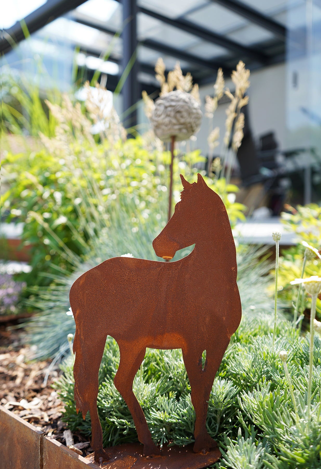 Dit unieke tuinbeeld maakt indruk met zijn elegante ontwerp en stijlvolle roestvrijstalen afwerking. Het is een onvergelijkbare blikvanger die iets toevoegt aan elke tuin.