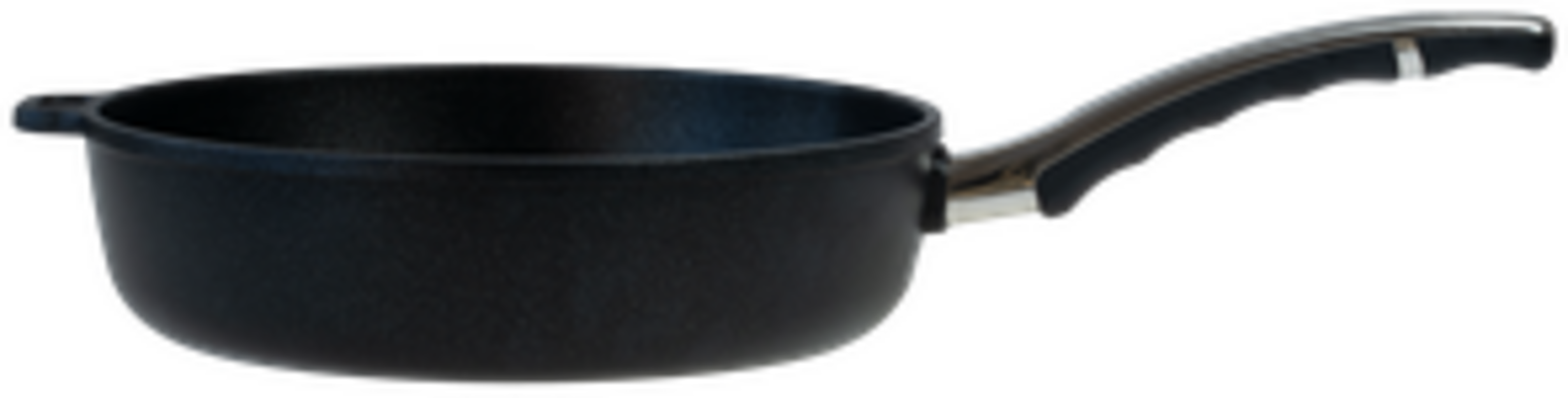 Met deze robuuste braadpan maak je gegarandeerd de juiste keuze! Hij is met de hand gegoten in een fabriek in Duitsland en biedt genoeg ruimte voor gebraden vlees, groenten en nog veel meer dankzij de hoge rand en het grote vulvolume. Dankzij de vierlaagse antiaanbaklaag kun je je eten bakken zonder olie en het voorkomt ook dat het aanbrandt. Bijzonder praktisch: de pan is ovenbestendig en kan in de oven gebruikt worden tot 260° C, perfect om te gratineren of te gratineren! De ergonomisch gevormde handgreep maakt het hanteren van de pan ook bijzonder comfortabel.