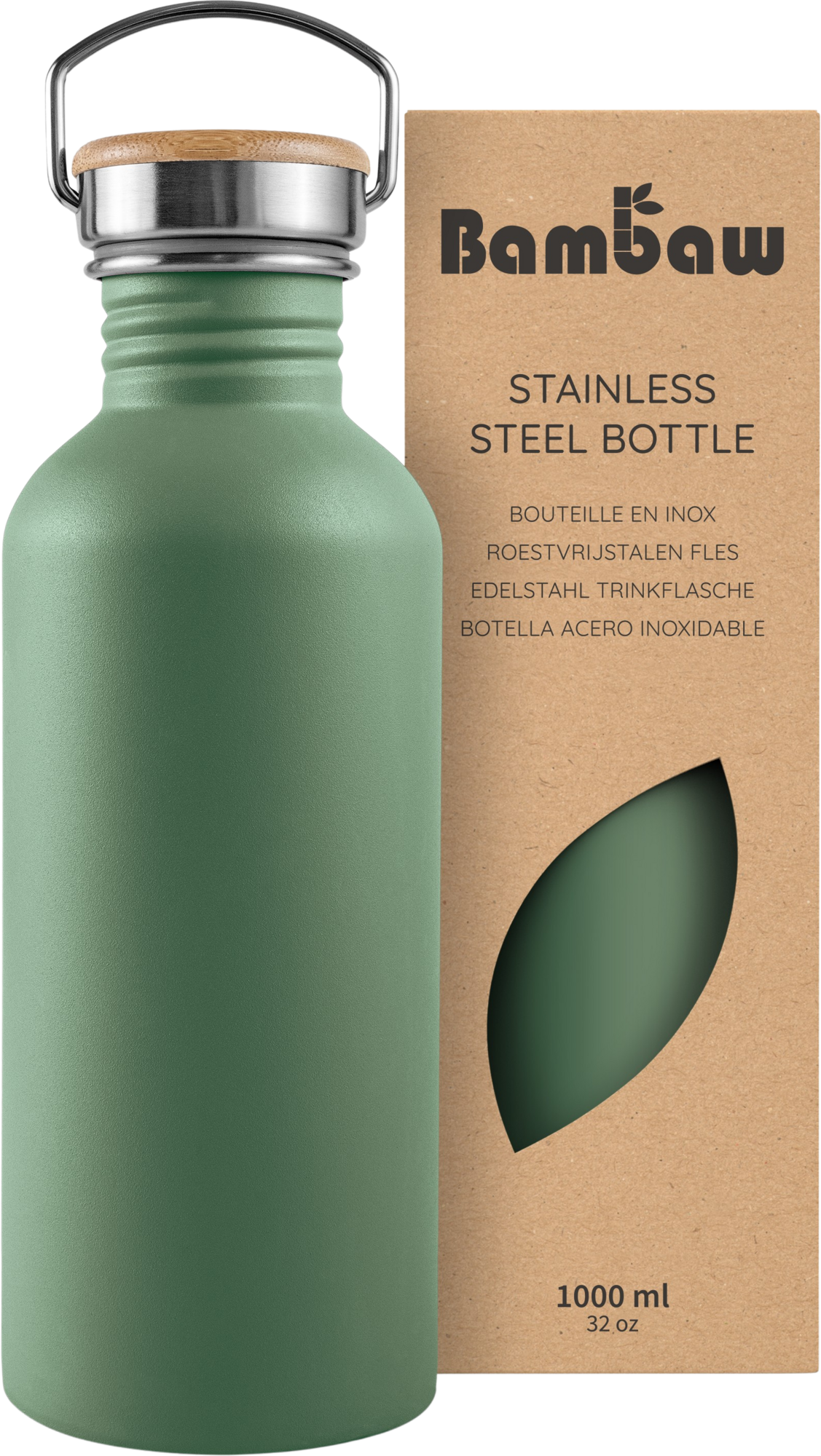 Bambaw Roestvrijstalen Fles, 1000 ml, Sage Green