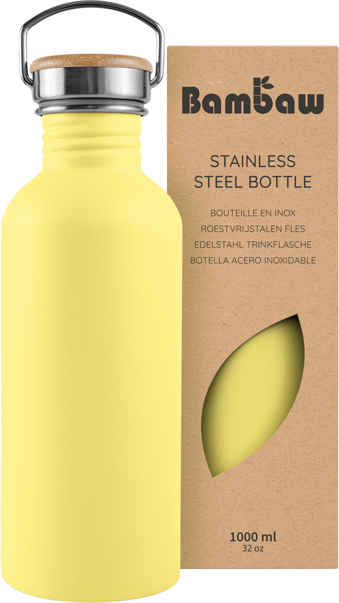 Bambaw Roestvrijstalen Fles, 1000 ml, Yellow Beam