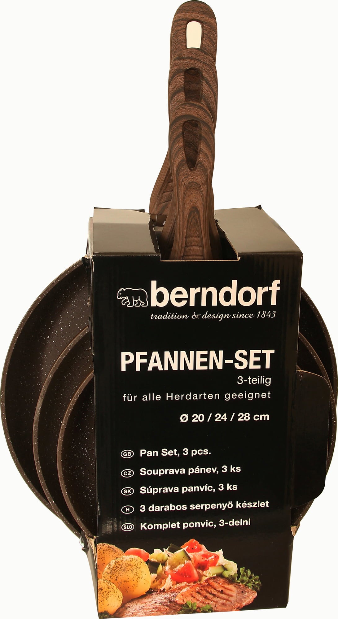 De 3-delige hout/marmer-look koekenpannenset van Berndorf bestaat uit 3 verschillende koekenpannen die maximaal gemak en kookplezier van hoge kwaliteit bieden. Met deze pannen wordt koken een waar genot, of het nu gaat om knapperige groenten, vlees of gewoon eieren bij het ontbijt. De antiaanbaklaag is vaatwasmachinebestendig en de pannen zijn geschikt voor glaskeramiek en inductie, maar ook voor alle soorten kookplaten!