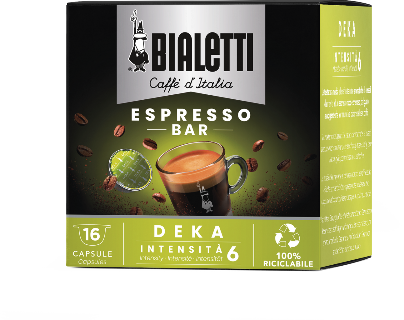 De Bialetti Deka melange is perfect voor iedereen die wil genieten van een espresso met een laag cafeïnegehalte zonder dat dit ten koste gaat van de authentieke Italiaanse koffiesmaak. Ervaar de smaak van versgemalen koffie in elke capsule.