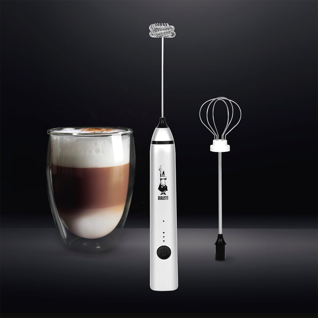 Geniet van heerlijk melkschuim met de nieuwe Bialetti melkopschuimer - je ultieme partner voor romig schuim en perfect gemengde dranken. Met zijn strakke design combineert hij stijl en prestaties. Dankzij de drie snelheidsinstellingen kun je de textuur van het schuim naar wens aanpassen - van fluweelzacht tot heerlijk luchtig. De klassieke garde tovert luchtig schuim voor cappuccino en latte macchiato, de garde voor warme chocolademelk of matcha latte. Met de praktische USB-oplaadfunctie is je melkopschuimer altijd klaar voor gebruik, zonder verwarde kabels.