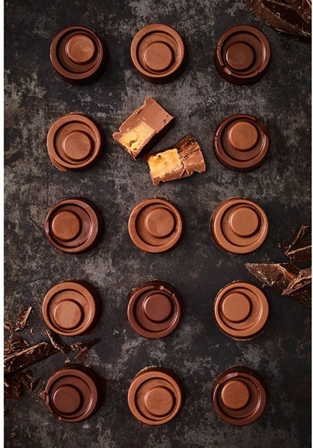 Twee mallen van voedselveilige siliconen voor het maken van chocolaatjes, in verschillende designs.