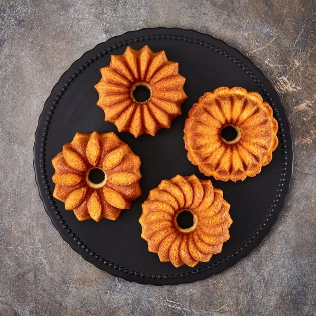 Met de Belissima tulbandbakvorm uit de Contoura-serie van hoogwaardig gegoten aluminium bak je in één keer vier heerlijke mini-tulbandcakes – praktisch, stijlvol en met een perfect resultaat!