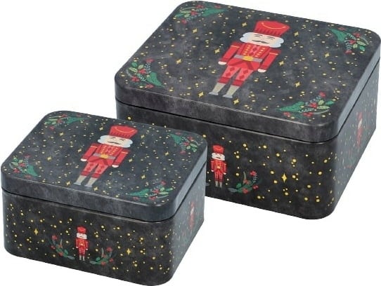 Deze tweedelige set in verschillende maten is voorzien van een charmante notenkraker. Ideaal om thuis koekjes in te bewaren of om zelfgemaakte koekjes cadeau te geven.