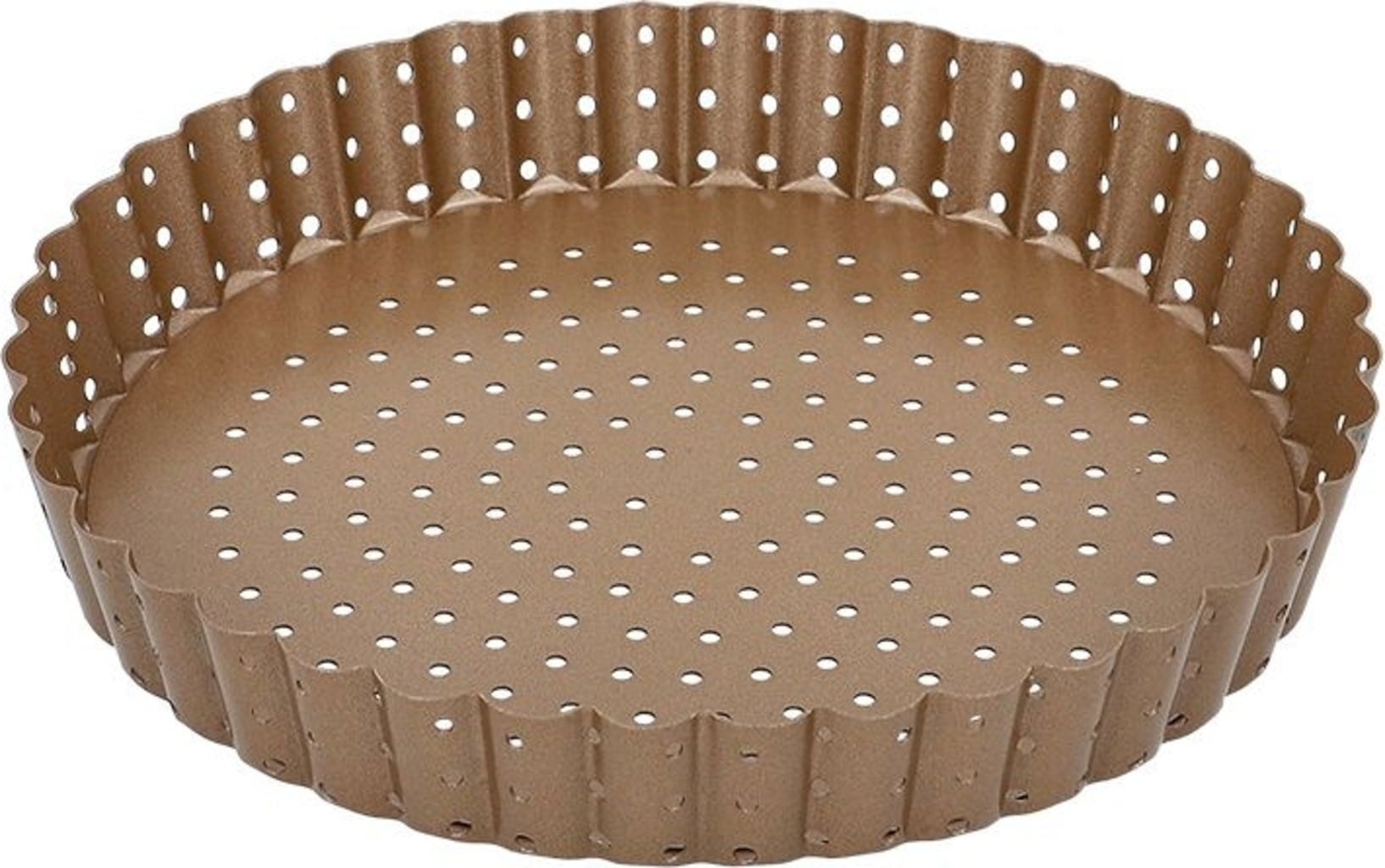 Met deze bijzondere bakvorm van robuust carbonstaal worden quiches, taarten etc. gegarandeerd een succes. De perforatie rondom zorgt voor een optimale luchtcirculatie tijdens het bakproces, terwijl de hoogwaardige antiaanbaklaag ervoor zorgt dat de afgewerkte delicatesse gemakkelijk te verwijderen is.