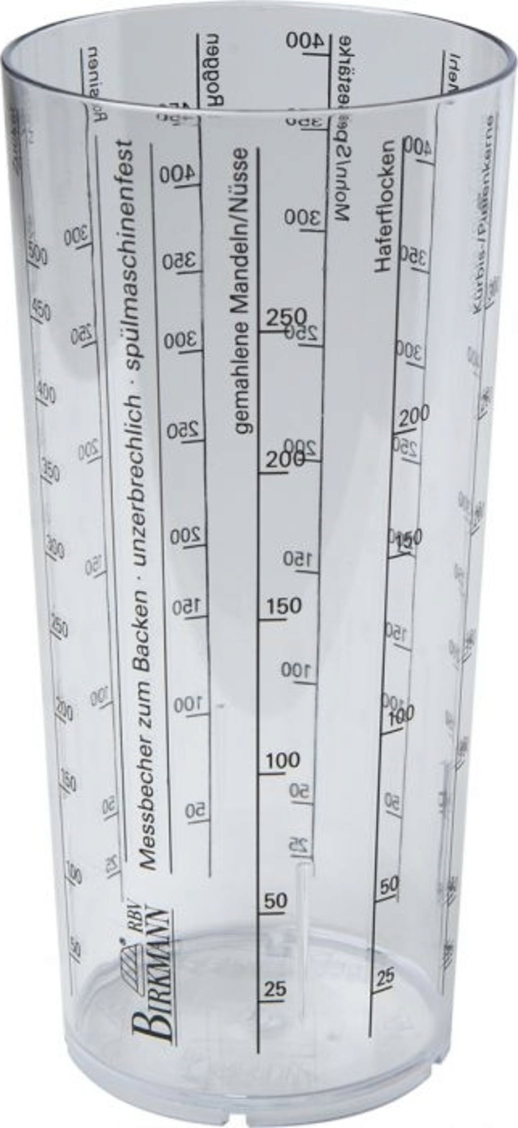 Deze handige maatbeker heeft een slank, ontwerp dat ruimte bespaart. Hij is gemaakt van stevig, transparant plastic en geeft aan hoe je verschillende soorten ingrediënten nauwkeurig kunt afmeten zonder ze te hoeven wegen.