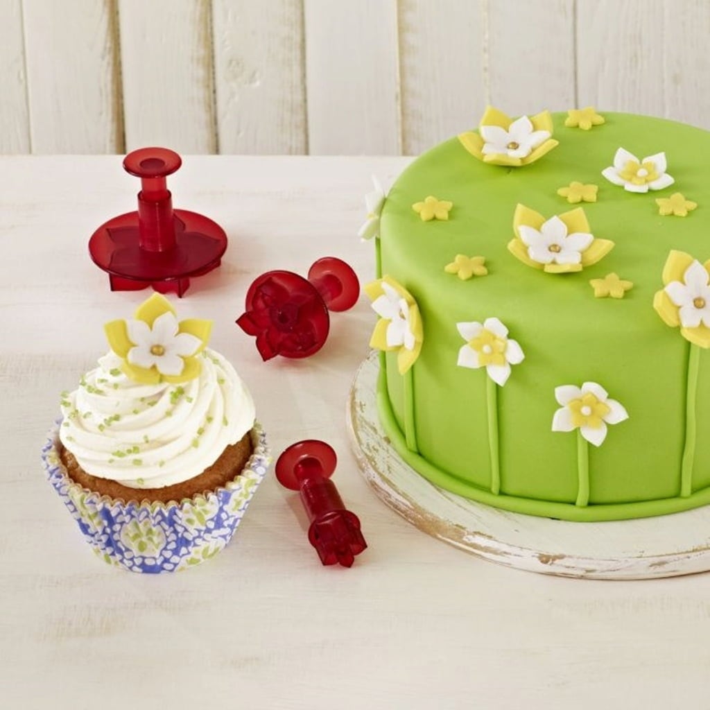 Maak van je taarten een absoluut hoogtepunt met deze praktische uitsnijderset. Dankzij de praktische uitwerper kun je heel eenvoudig bloemen in drie verschillende maten uit kleurrijk fondant snijden. Laat je creativiteit de vrije loop. Natuurlijk kun je ook koekjes uitsnijden met deze set.