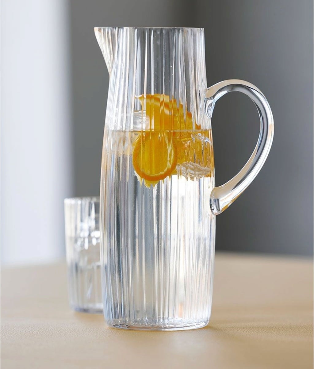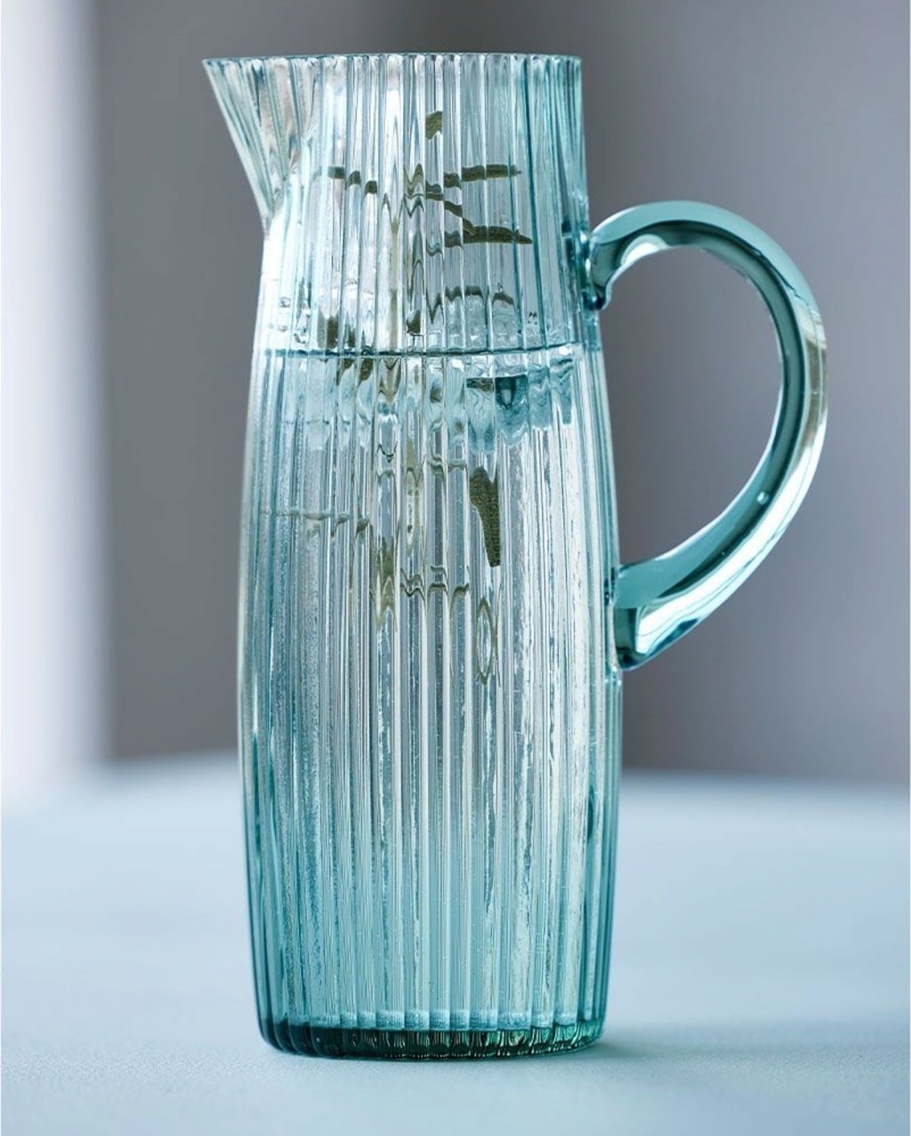 De prachtig bewerkte karaf in geribbelde look maakt indruk met zijn tijdloze elegantie en geweldige kleuren. Perfect voor water, sap of zelfgemaakte limonade.