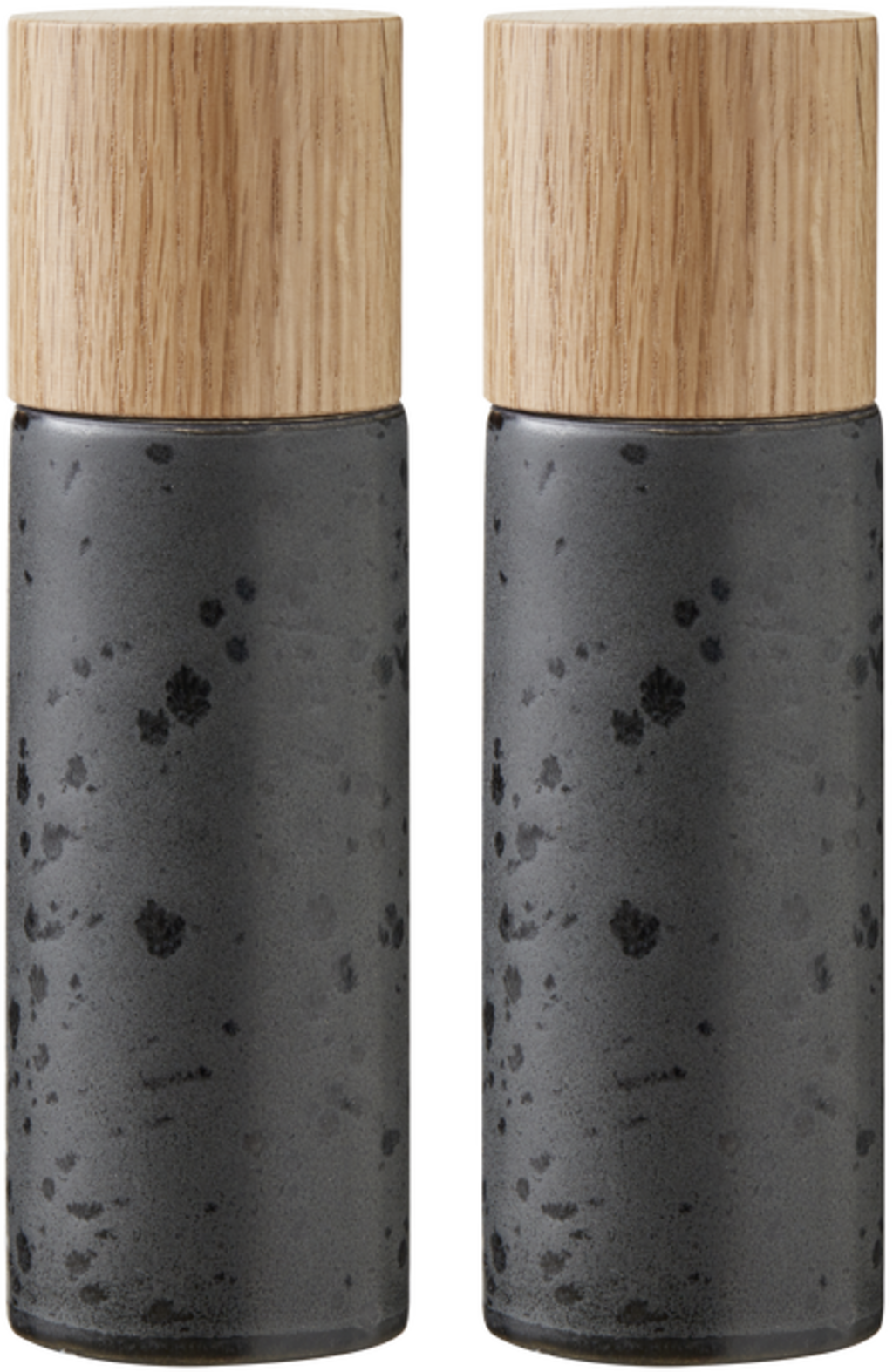 Dit peper- en zoutstel is gemaakt van mat geglazuurd steengoed en wordt afgesloten met een prachtig eikenhouten deksel. Het ontwerp is eenvoudig maar elegant en staat stijlvol op elke tafel. De molens zijn uitgerust met een duurzaam, keramisch maalmechanisme, liggen prettig in de hand en zijn gemakkelijk te draaien.