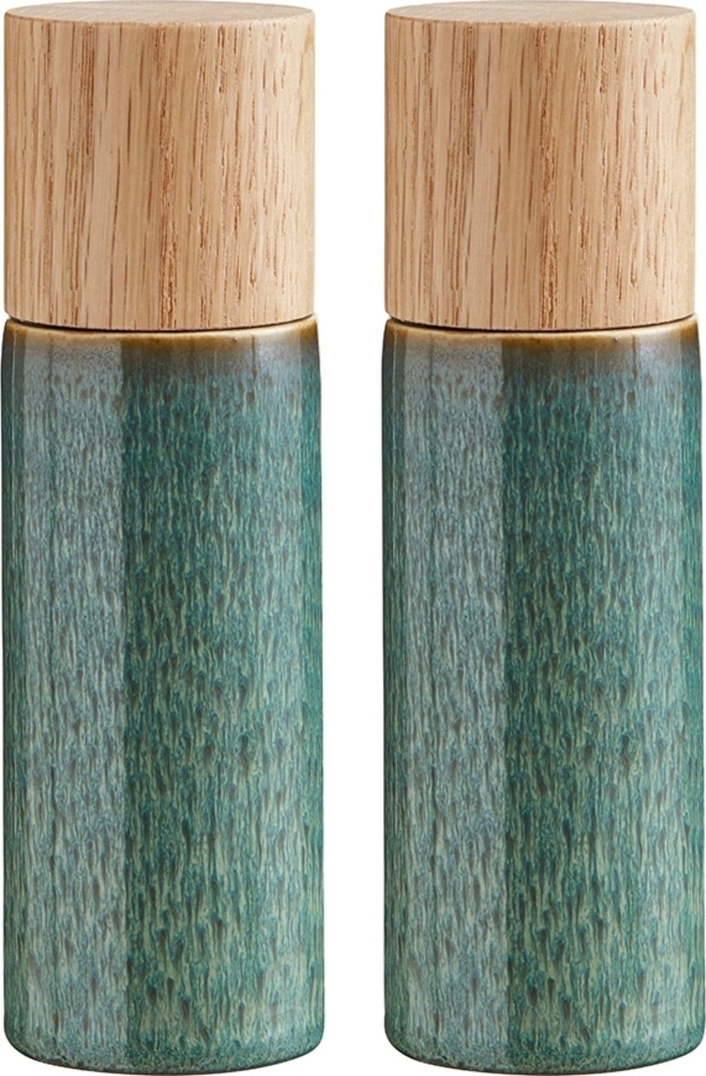 Breng kleur op tafel met het handgemaakte peper en zoutstel van Bitz! Dankzij de uitgebreide en reactieve glazuurtechniek ontstaan prachtige unieke stukken met een onmiskenbare charme. Een geweldig contrast: prachtig bewerkte eikenhouten bladen.