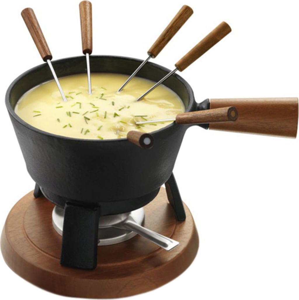 Stijlvolle fondueset die uitnodigt voor een gezellige tijd met vrienden. De combinatie van zwart gietijzer en warm eikenhout zorgt voor een fantastische uitstraling. Niet alleen kan de pan op alle soorten fornuizen gebruikt worden, de kaas smelt er zeer gelijkmatig in en is moeilijk te verbranden. Ook als cadeau laat de set gegarandeerd je ogen stralen.