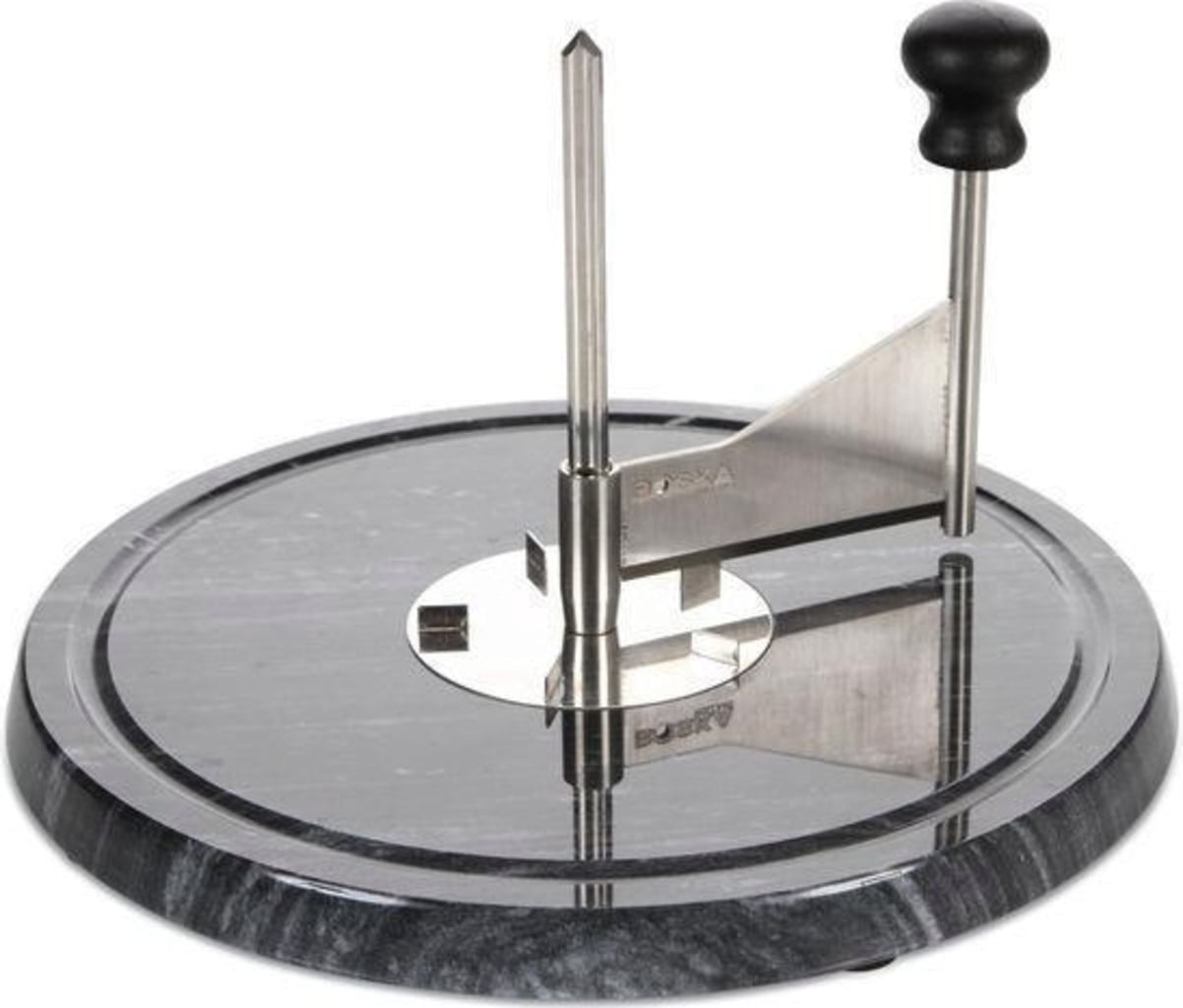 De marmeren plaat en vijf in de sokkel bevestigde pinnen zorgen te allen tijde voor een stabiele stand en goede grip, terwijl het mes en de centreerpen van hoogwaardig roestvrij staal zorgen voor de beste snijresultaten..