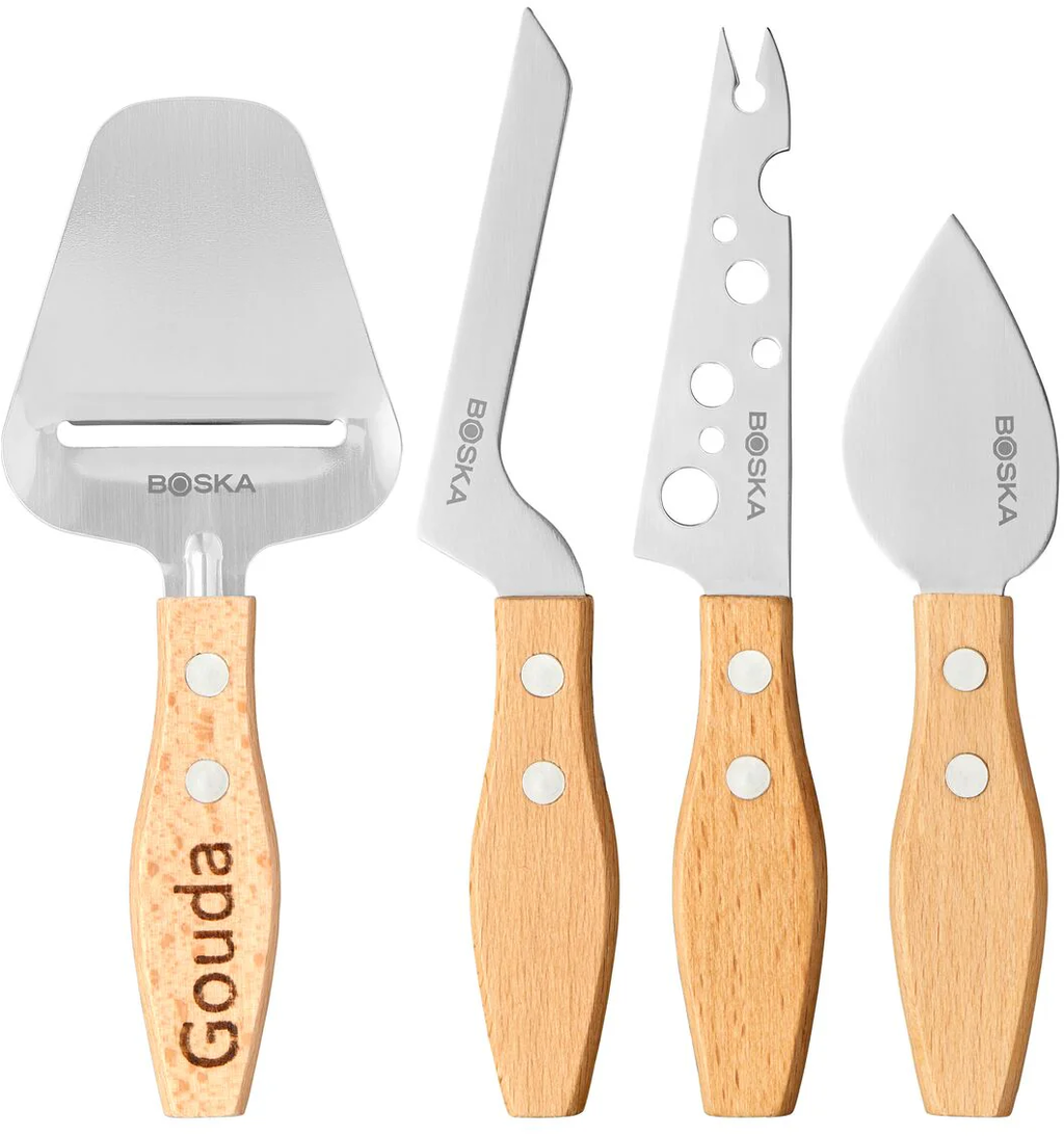 Deze veelzijdige kaasmessenset bestaat uit vier hoogwaardige keukengereedschappen ontworpen voor verschillende soorten kaas. De combinatie van roestvrij staal en beukenhout maakt de set niet alleen functioneel maar ook visueel aantrekkelijk. Een perfect cadeau voor kaasliefhebbers.
