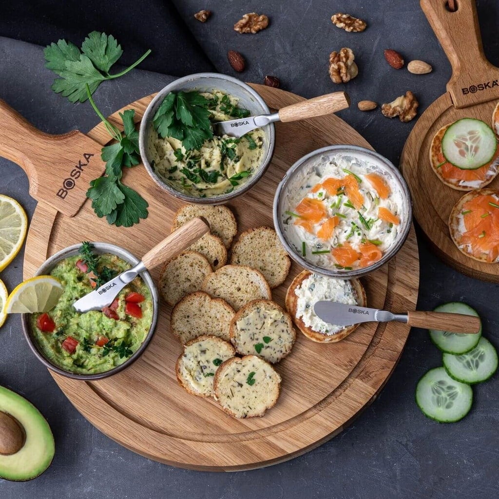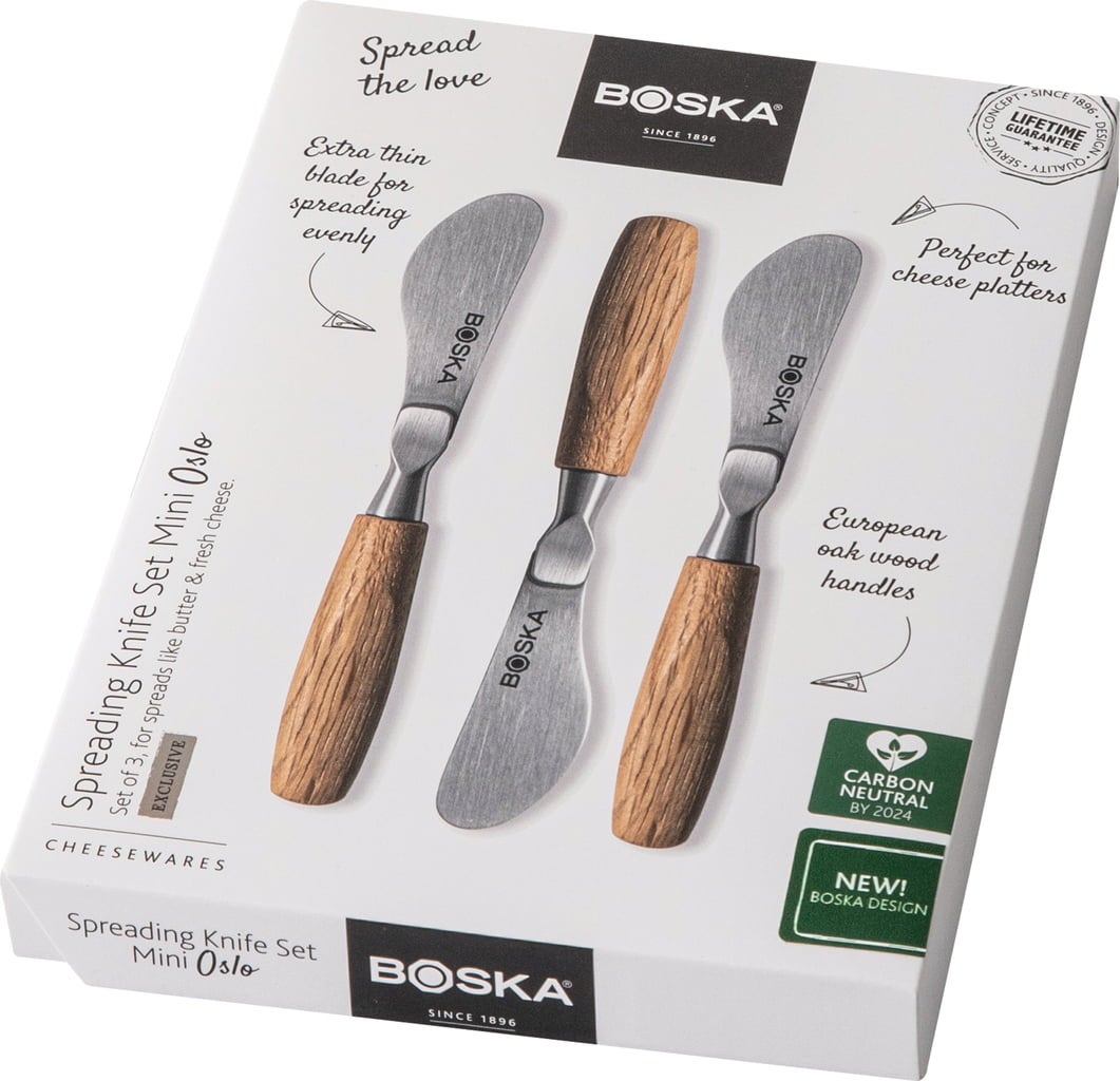 Met de praktische Mini Oslo smeermessen van Boska wordt elk ontbijt een genietmoment. De compacte messen liggen bijzonder prettig in de hand dankzij het ergonomische houten handvat en brengen stijl op tafel. Ideaal voor boter, spreads en smeerkaas - de fijne messen zorgen voor een bijzonder gelijkmatige verdeling direct op je brood. Of het nu voor ontbijt, brunch of diner is - deze messen zijn kleine, elegante hulpjes met een grote impact!