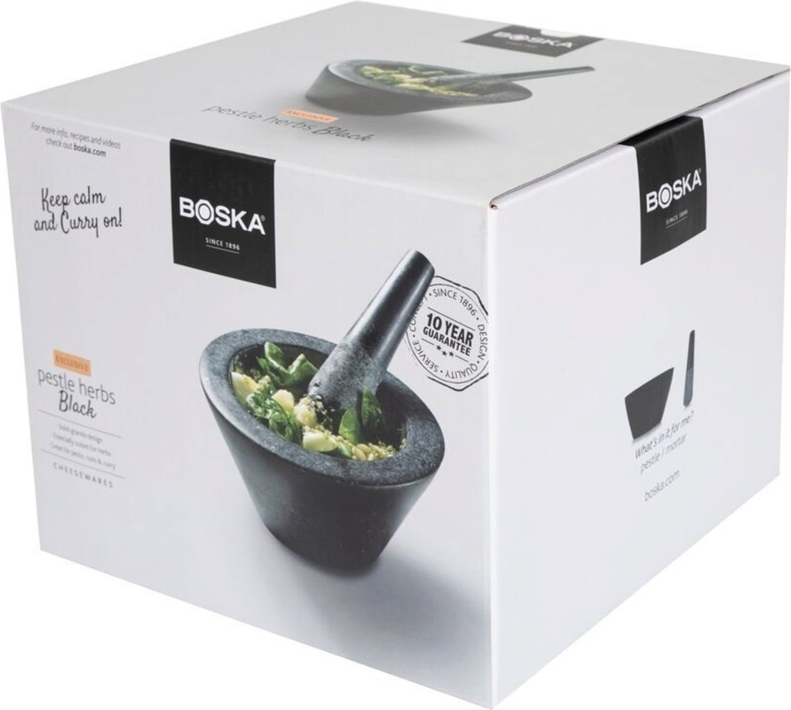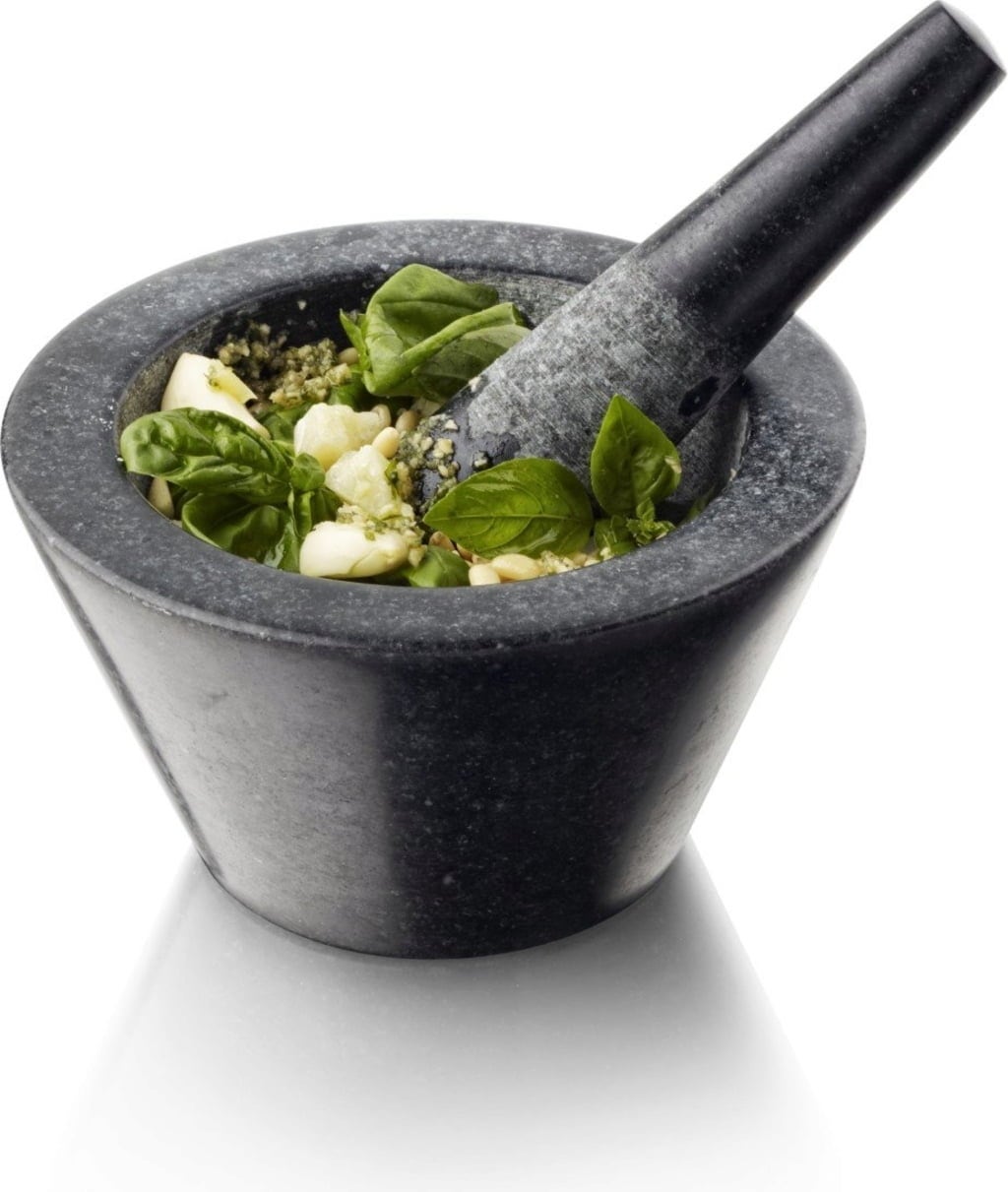 Heerlijk ruikende kruiden vormen de kers op de taart bij elke maaltijd - of het nu op een heerlijk kaasplateau is of bij warme gerechten. Met deze elegante vijzel van robuust graniet kunnen kruiden, zout en peper eenvoudig fijngemalen worden. Perfect voor het verfijnen van dips, sauzen, pesto's, currypasta's - er zijn geen grenzen aan je eigen fantasie.