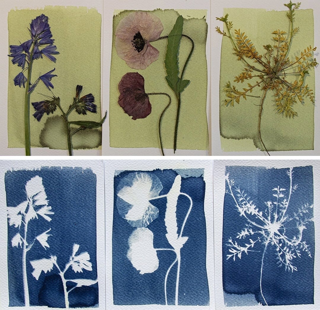 Cyanotypie is een in 1842 ontdekte fotografische druktechniek waarbij zonlicht wordt gebruikt om een cyaanblauwe afdruk te maken. Destijds werd het gebruikt om betaalbare kopieën te maken van technische tekeningen, maar tegenwoordig kun je er unieke kunstwerkjes mee maken.