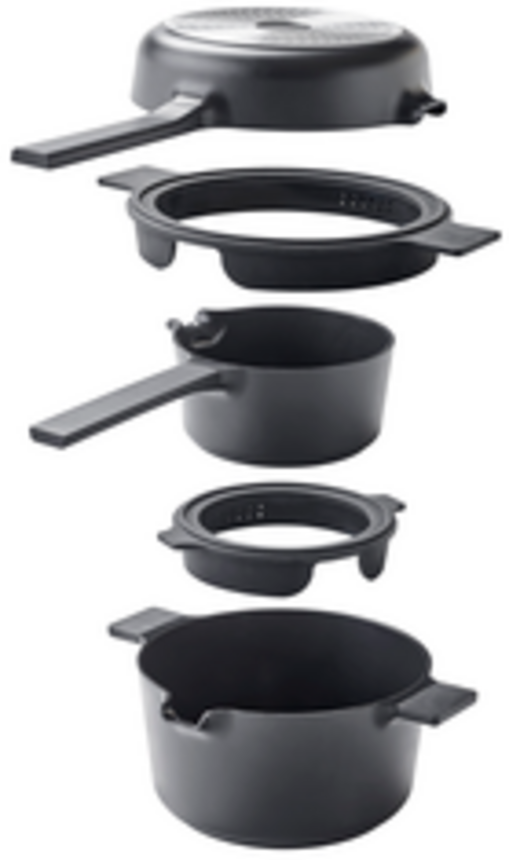 Deze 5-delige pannenset biedt alles wat je nodig hebt om gezond en veelzijdig te koken. Het is gemaakt van gerecycled aluminium en maakt indruk met zijn hoogwaardige antiaanbaklaag, robuuste afwerking en antislip siliconen handgrepen. Geschikt voor alle soorten kookplaten - inclusief inductie en oven.