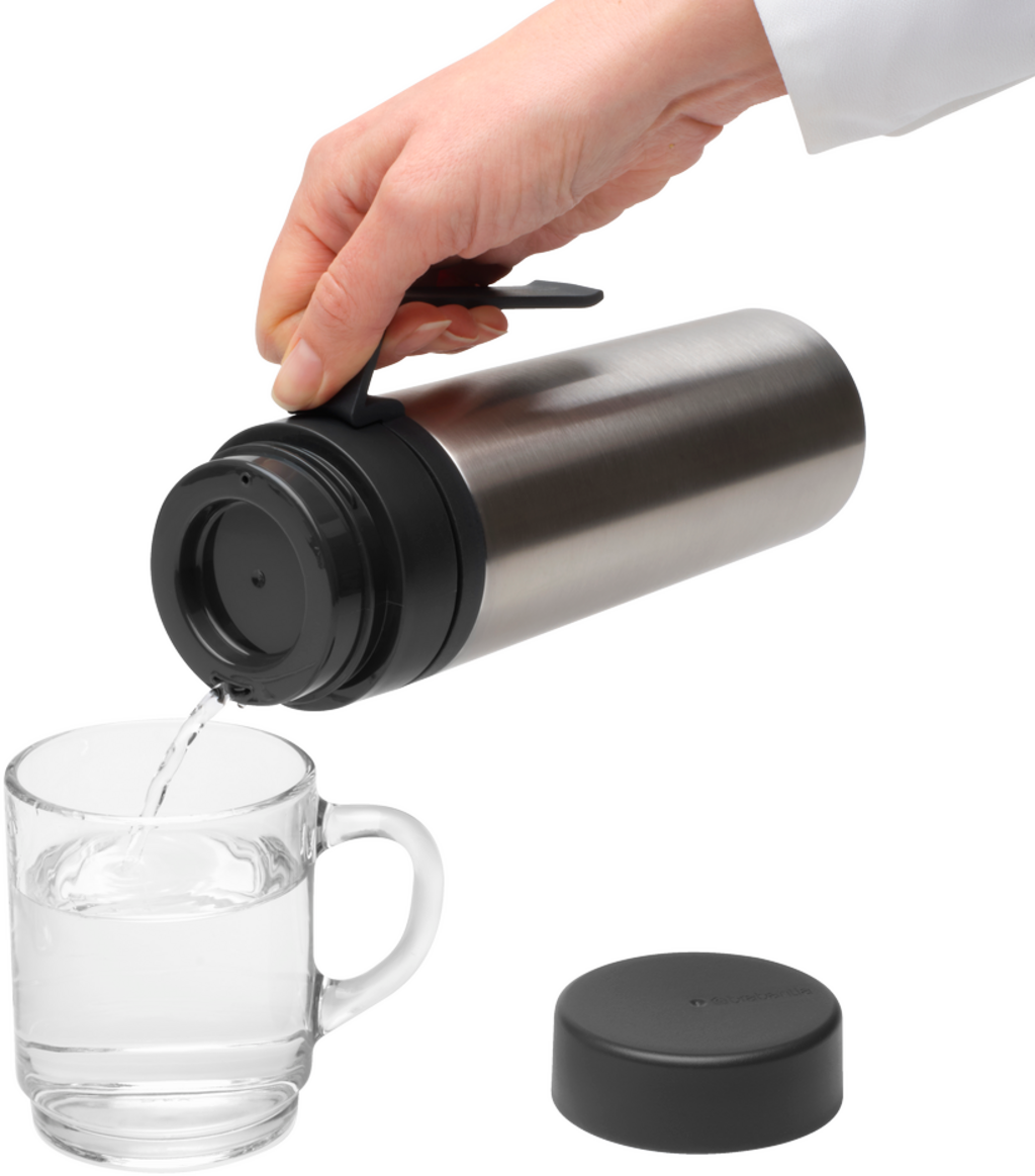 Altijd bij je! De lekvrije thermosfles houdt koffie of thee tot 6 uur warm of tot 12 uur koud. Het ingenieuze ontwerp zorgt ervoor dat je moeiteloos kunt drinken en schenken dankzij de kleine opening, en is gemakkelijk schoon te maken in de vaatwasser.