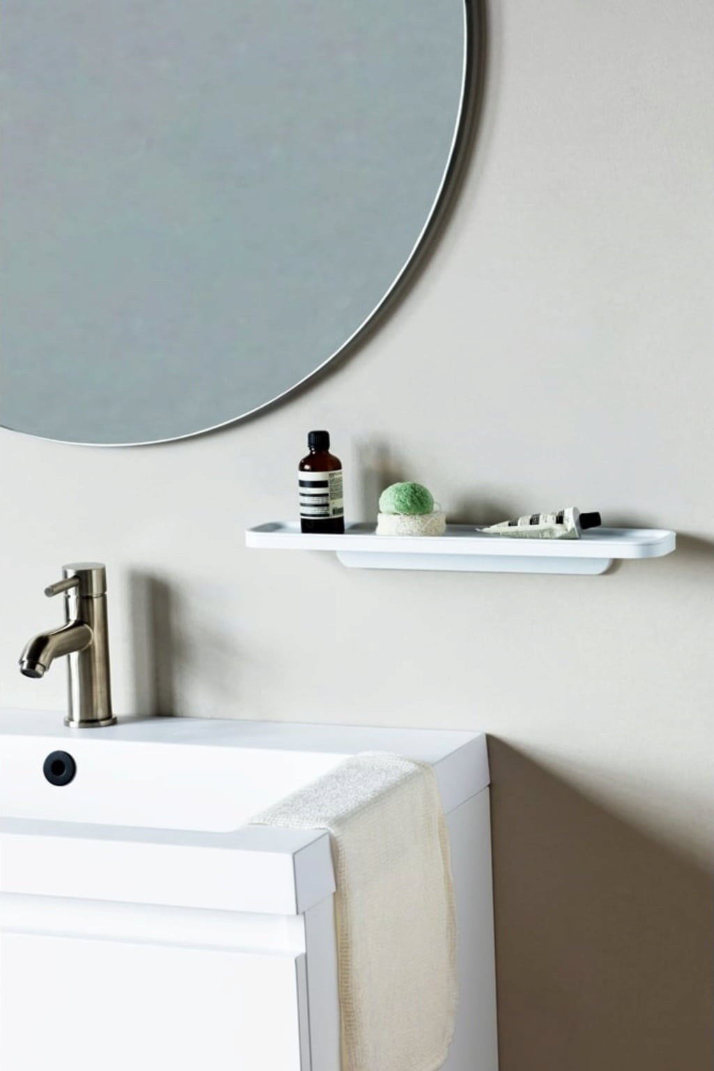 De badkamer is een plek waar het hectisch kan zijn, vooral 's ochtends - dus is het des te fijner als alles klaarstaat en je meteen aan je ochtendroutine kunt beginnen! Dit eenvoudig te installeren en robuuste badkamerplankje met een eenvoudig ontwerp brengt orde in de kamer: het dient als praktisch plankje voor zeepdispensers, tandenborstelbekers of opbergcontainers en is nog steeds klein genoeg om boven de wastafel of het bad te plaatsen.